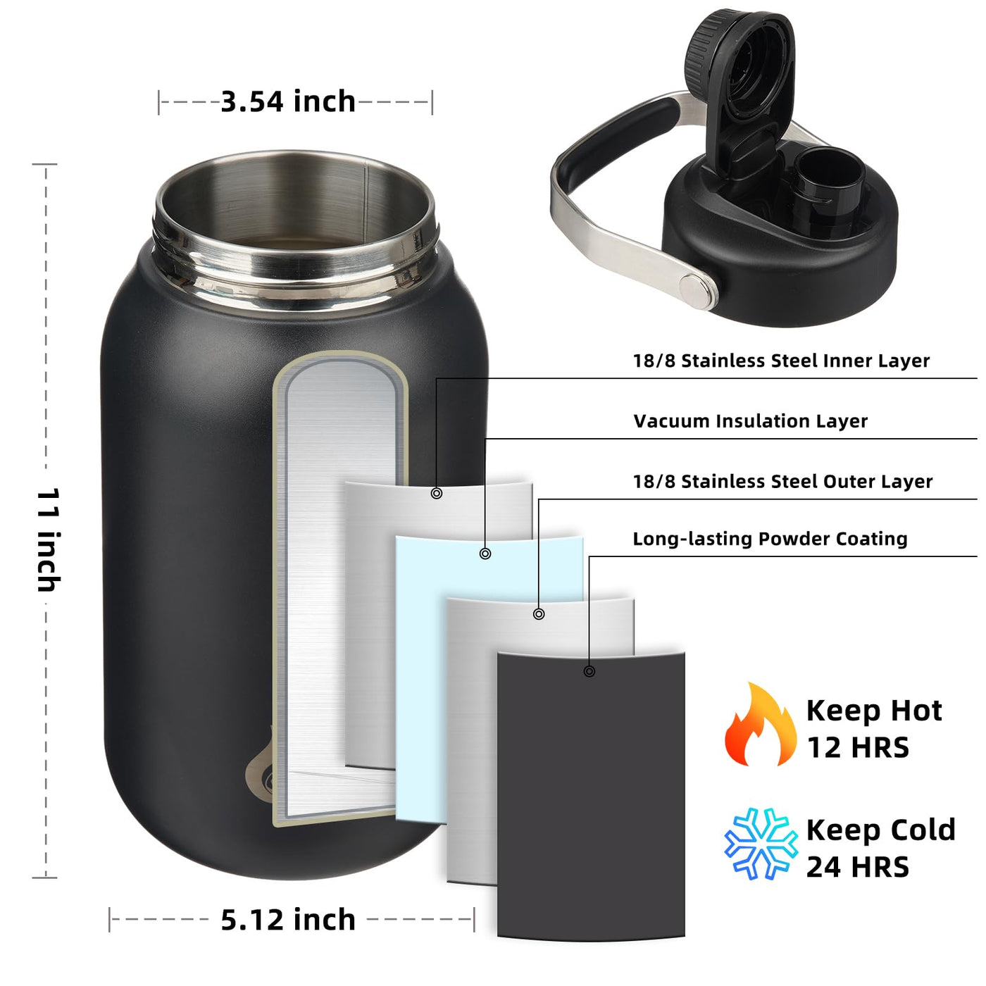 Bjpkpk Half Gallon Insulated Water Bottles, 64Oz Water Jug With Metal Handle & Bpa Free Spout Lid, Dishwasher Safe Thermos Water