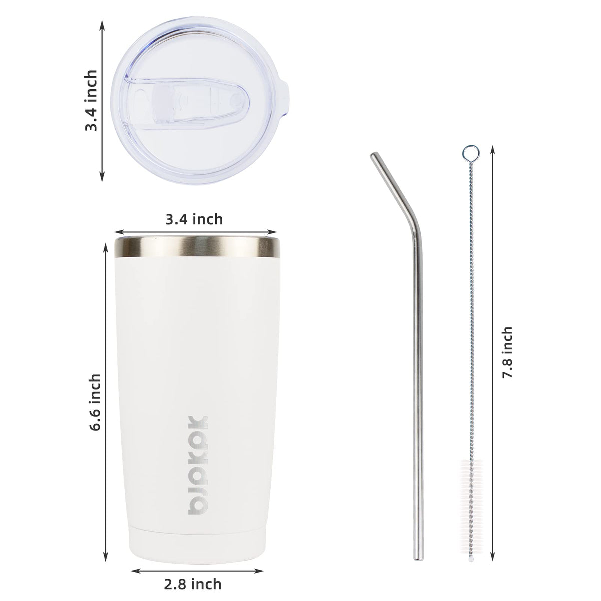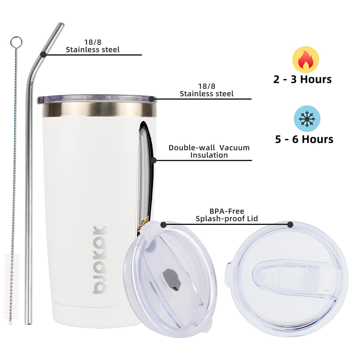 Bjpkpk White Stainless Steel Tumbler With Lid And Straw 20 Oz Insulated Tumblers Thermal Cup For Hot And Cold Drinks