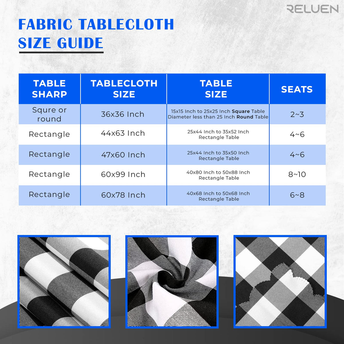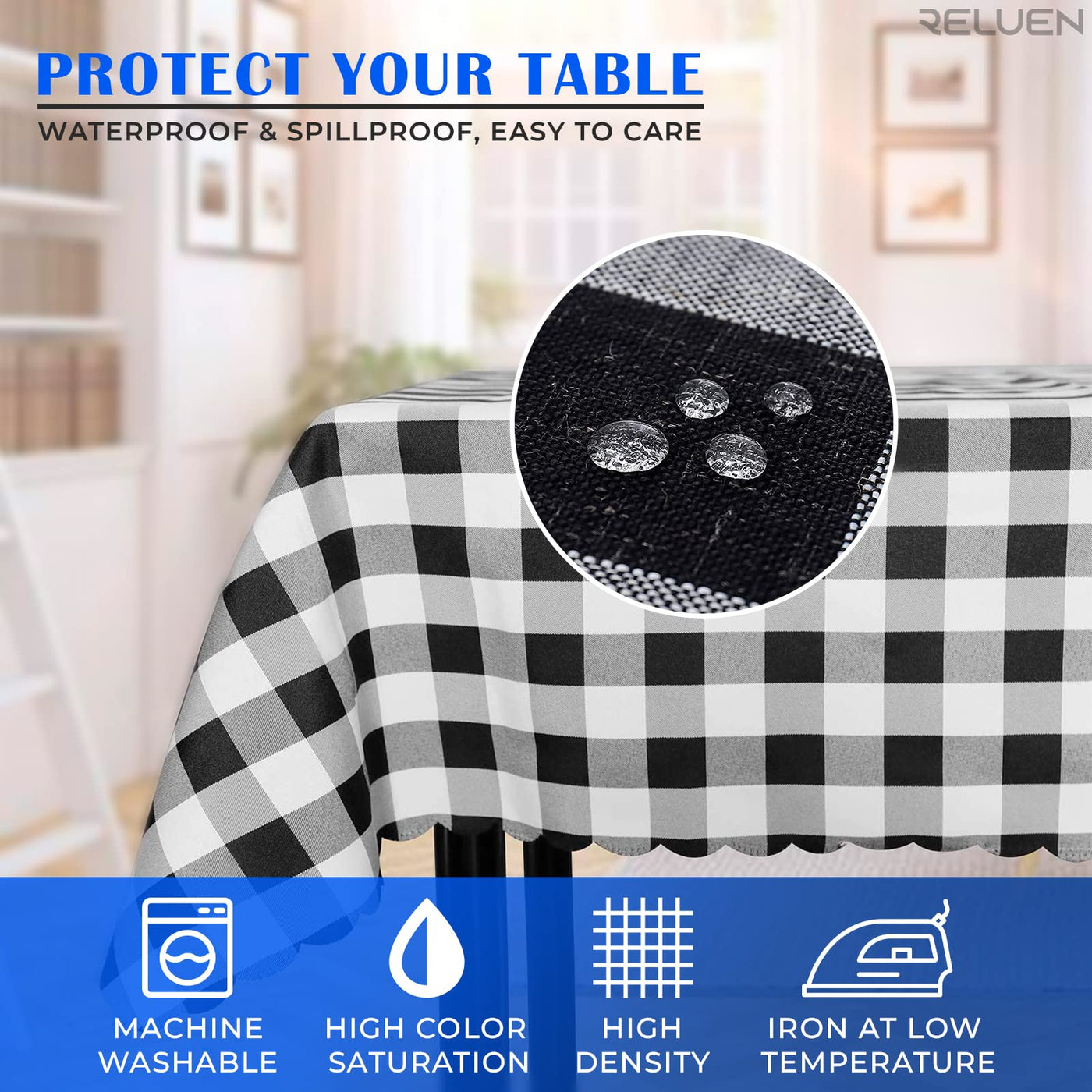 - Q: What design does the tablecloth feature? A: The tablecloth showcases a classic black and white buffalo plaid pattern, adding charm to any decor.