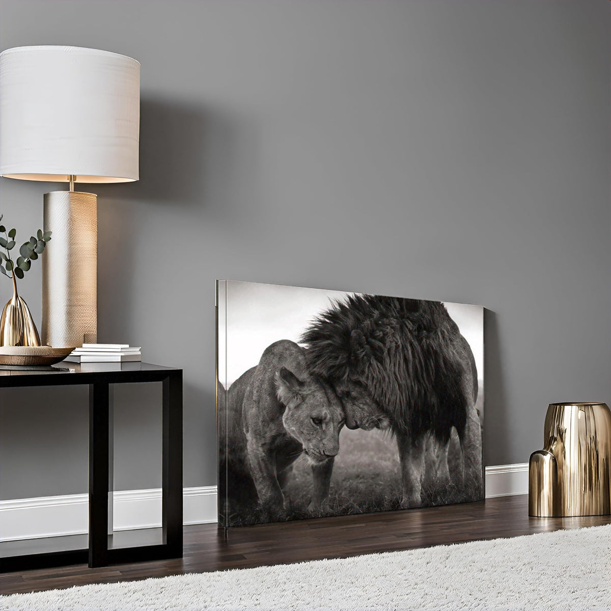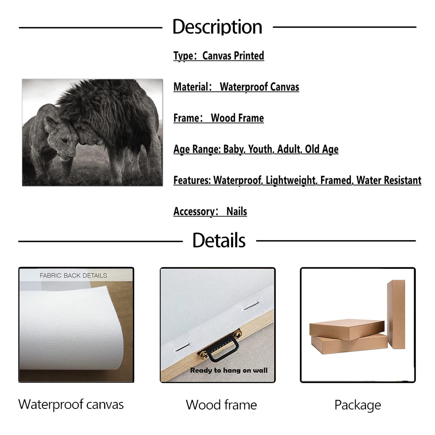 - Q: What type of images does the canvas print feature? A: The canvas print features high-definition images of a loving lion couple, capturing a romantic and serene atmosphere.