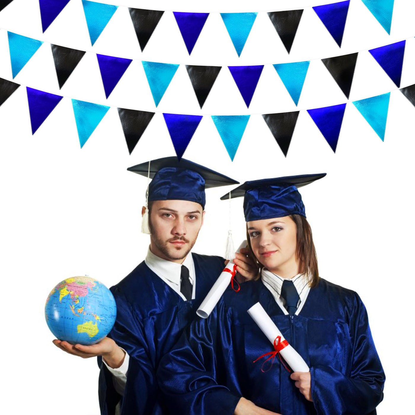 - Q: What color themes does the pennant banner feature? A: The pennant banner features a combination of light blue, royal blue, and black colors.