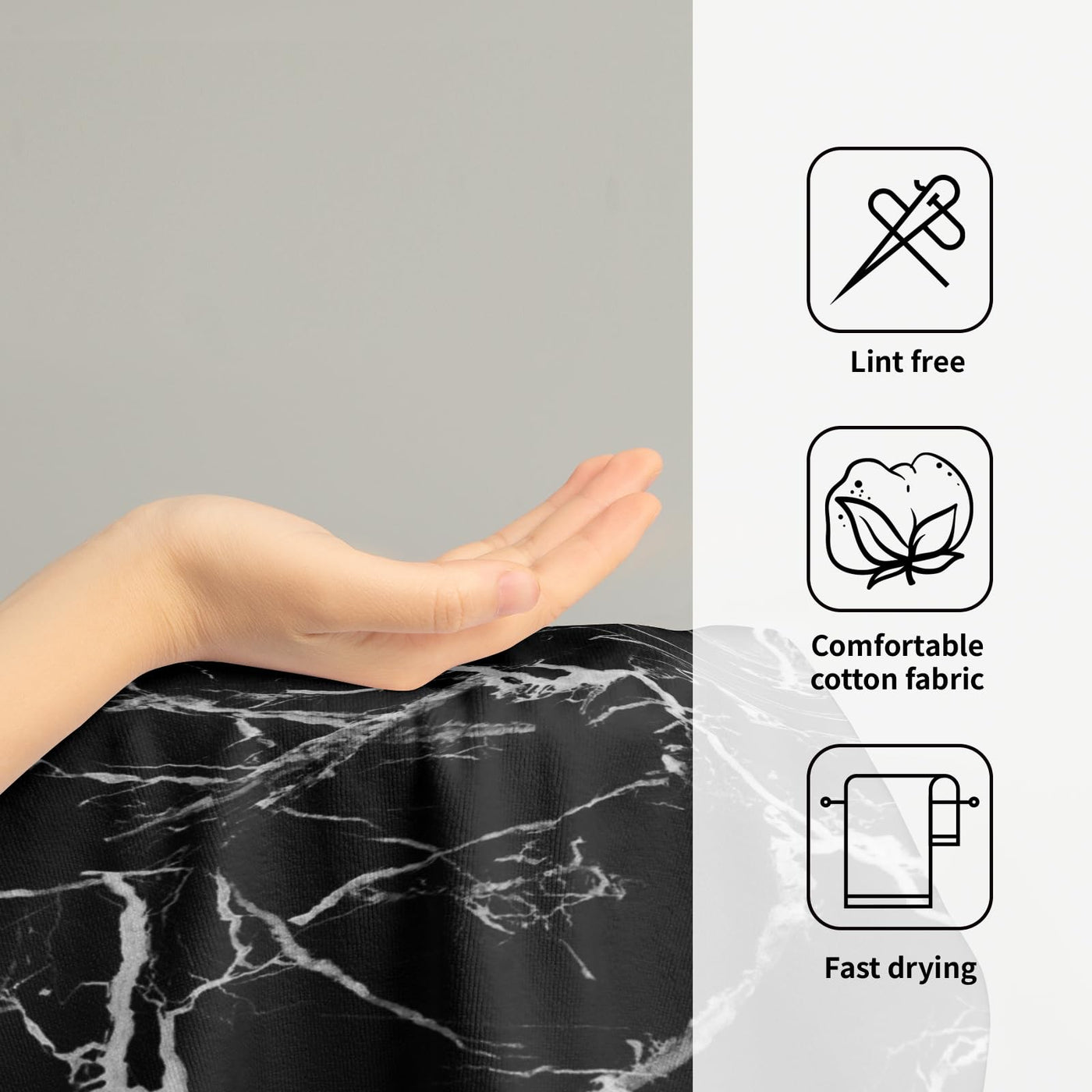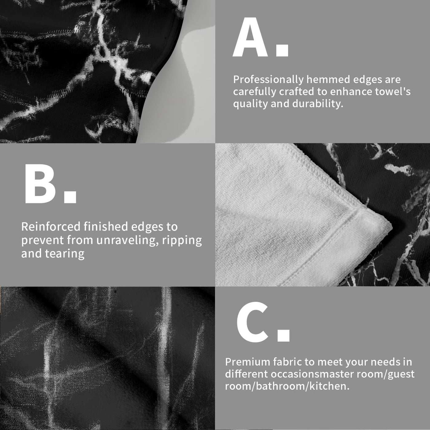 - Q: What makes these towels unique compared to regular towels? A: These towels feature a unique black and white marble texture print, adding a stylish touch while offering high absorbency and quick drying capabilities.