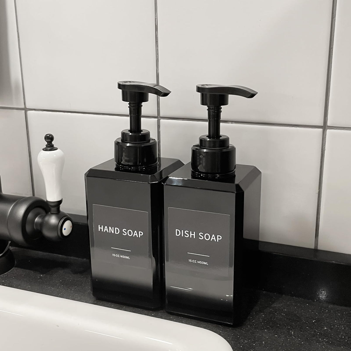 - Q: What design features do the dispensers have? A: The dispensers have a sleek black design and come with minimalist stickers, enhancing the aesthetics of your kitchen or bathroom.