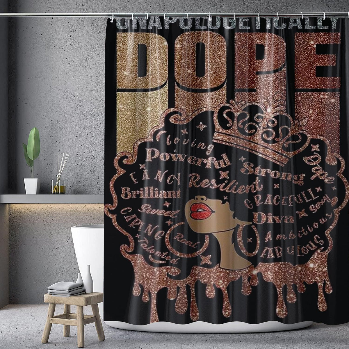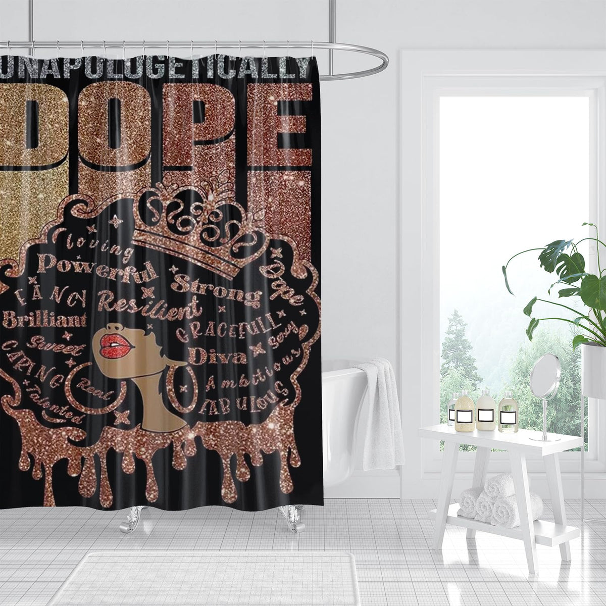Black Woman Shower Curtain African American Fashion Afro Black Girl Shower Curtains Pink Rose Inspirational Motivational Quotes