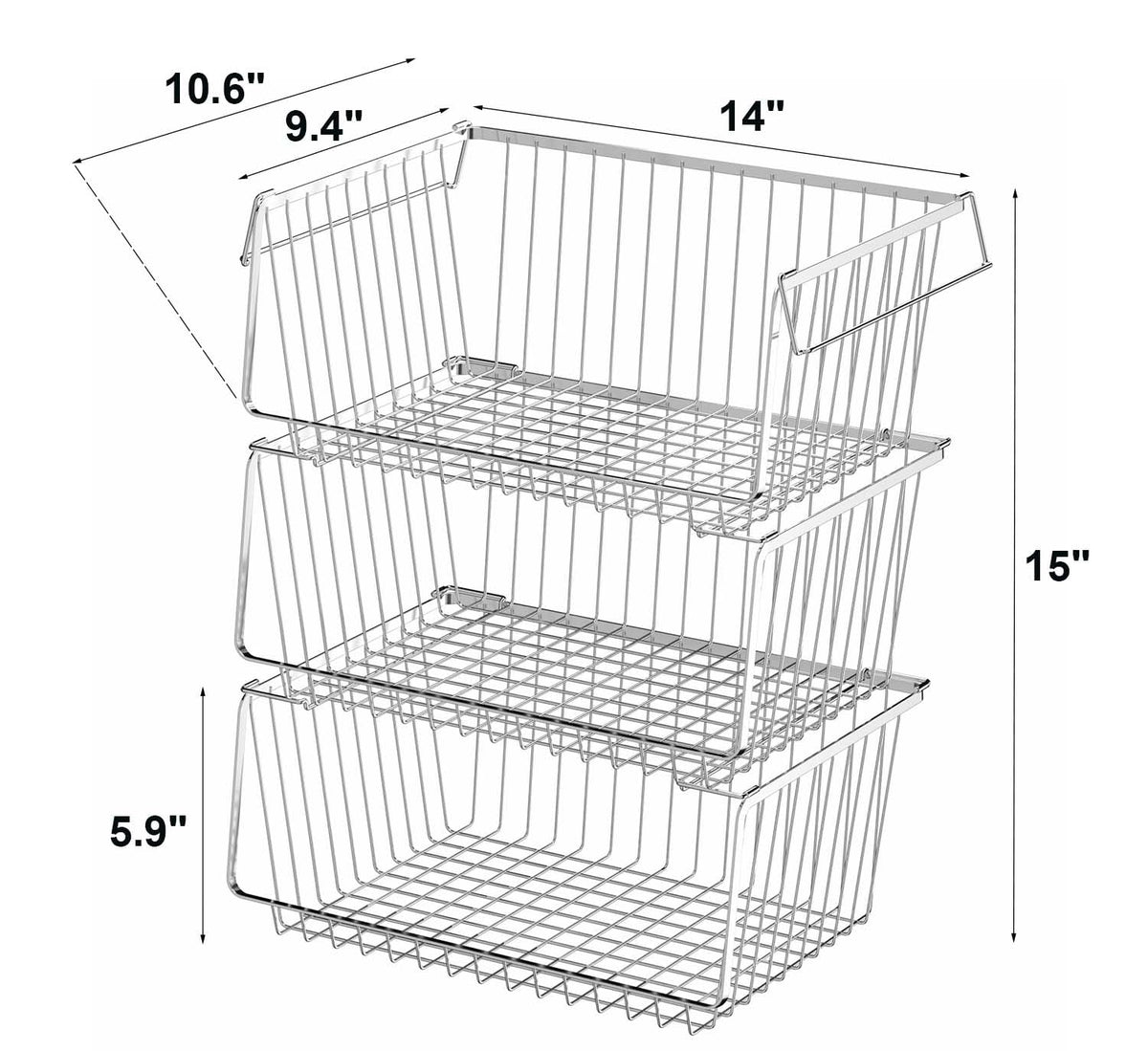Blitzlabs Wire Storage Basket Stackable Organizer Storage Baskets Bins Sturdy Metal Organization With Handles For Pantry, Kitche