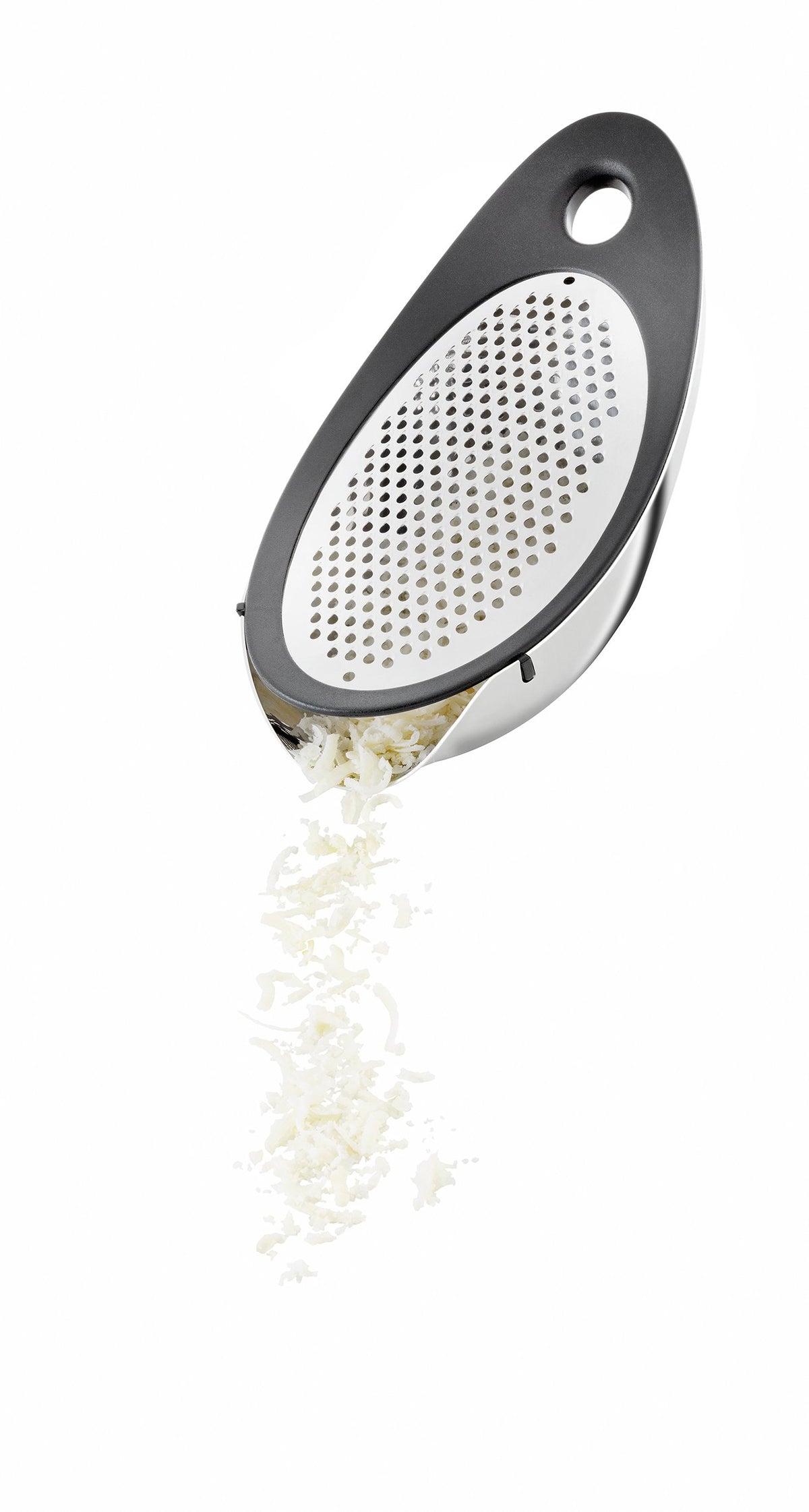 • Q: What types of cheese can I grate with this product? A: The blomus Cheese Grater is ideal for hard cheeses such as Parmesan, but can also be used for other similar cheese types.