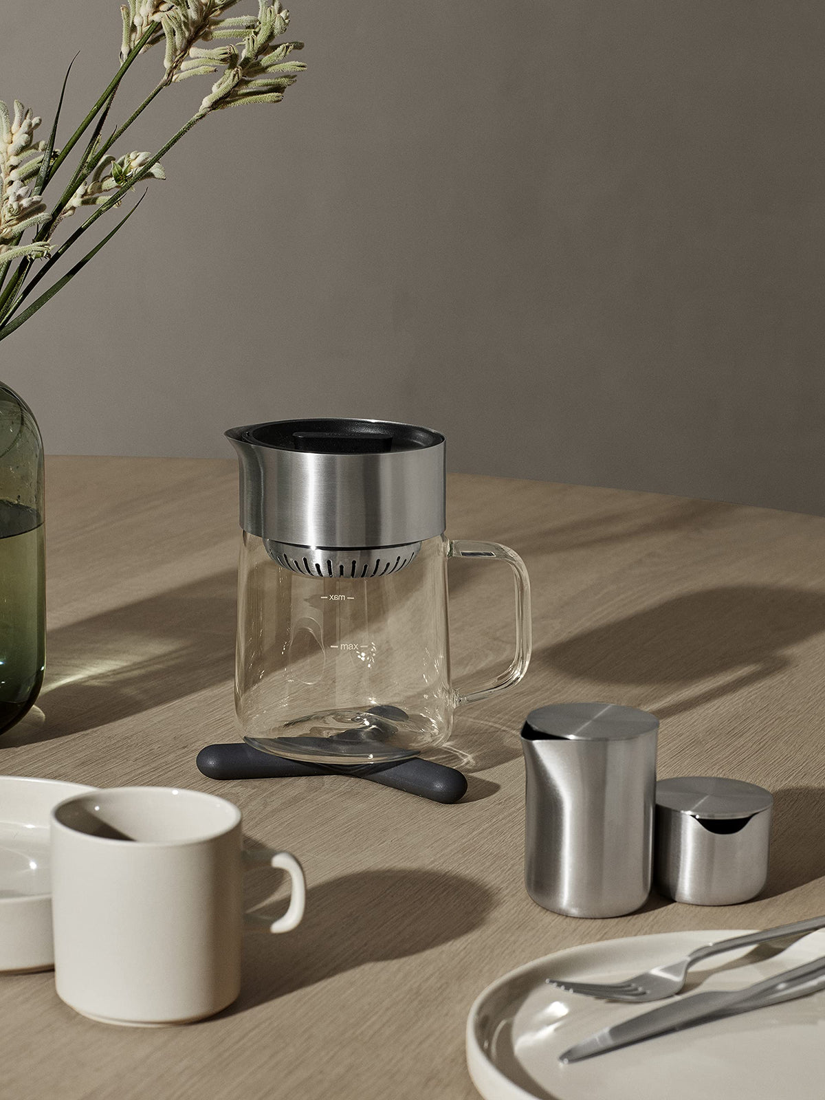 • Q: What material is the Blomus sugar bowl made of? A: The sugar bowl is made of stainless steel, which provides durability and a sleek finish.