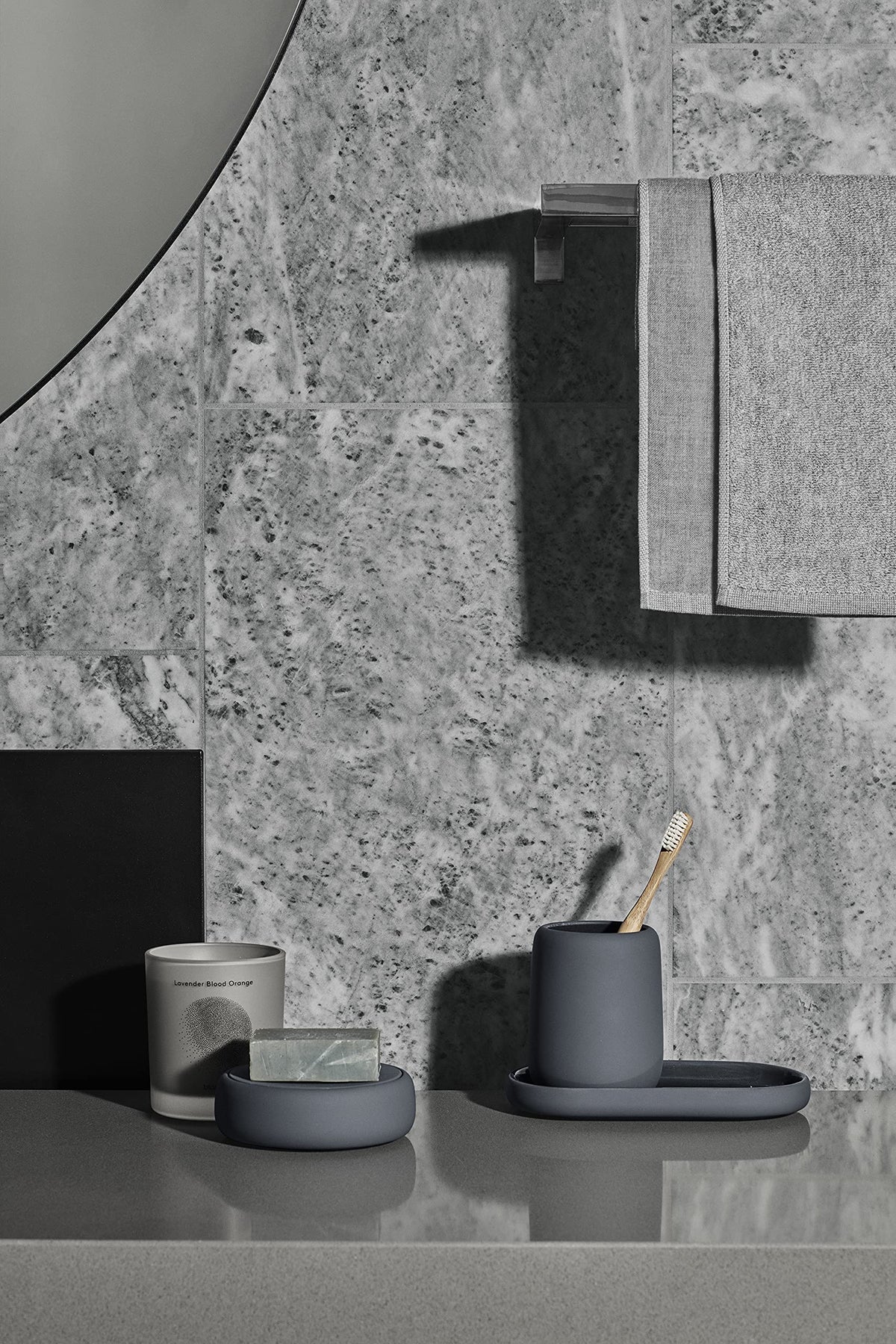 • Q: What is the design of the Blomus Bathroom Tumbler? A: The Blomus Bathroom Tumbler features a functional design with soft edges, a flattering shape, and a timeless aesthetic in an elegant grey tone.