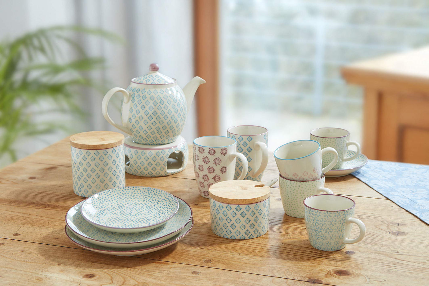- Q: What colors does the Bloomingville Sugar Bowl come in? A: The Bloomingville Sugar Bowl is primarily blue, fitting well with various table settings.