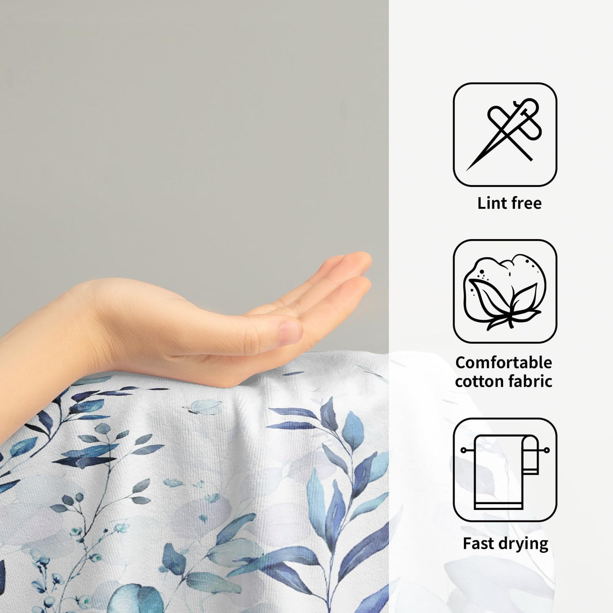- Q: Is the printing on both sides of the towels? A: No, the towels feature single-sided printing with a watercolor leaves pattern; the other side is white.