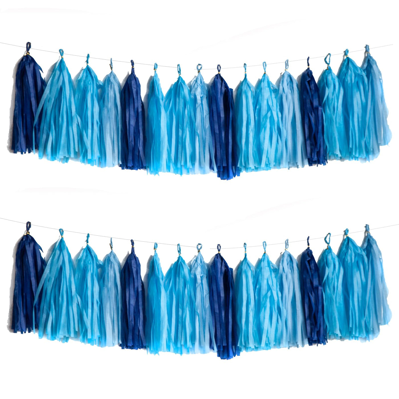 Blue Tassel Garland,Tissue Tassel Banner for Baby Showe Boy Party Decorations,Pack of 20