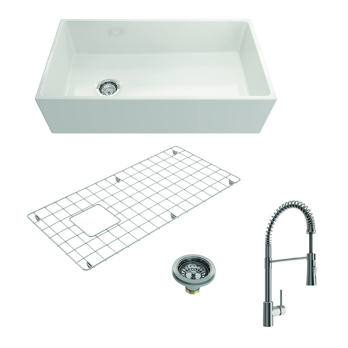 Bocchi Contempo Apron Front Fireclay 36 In. Single Bowl Kitchen Sink In White With Stainless Steel Faucet