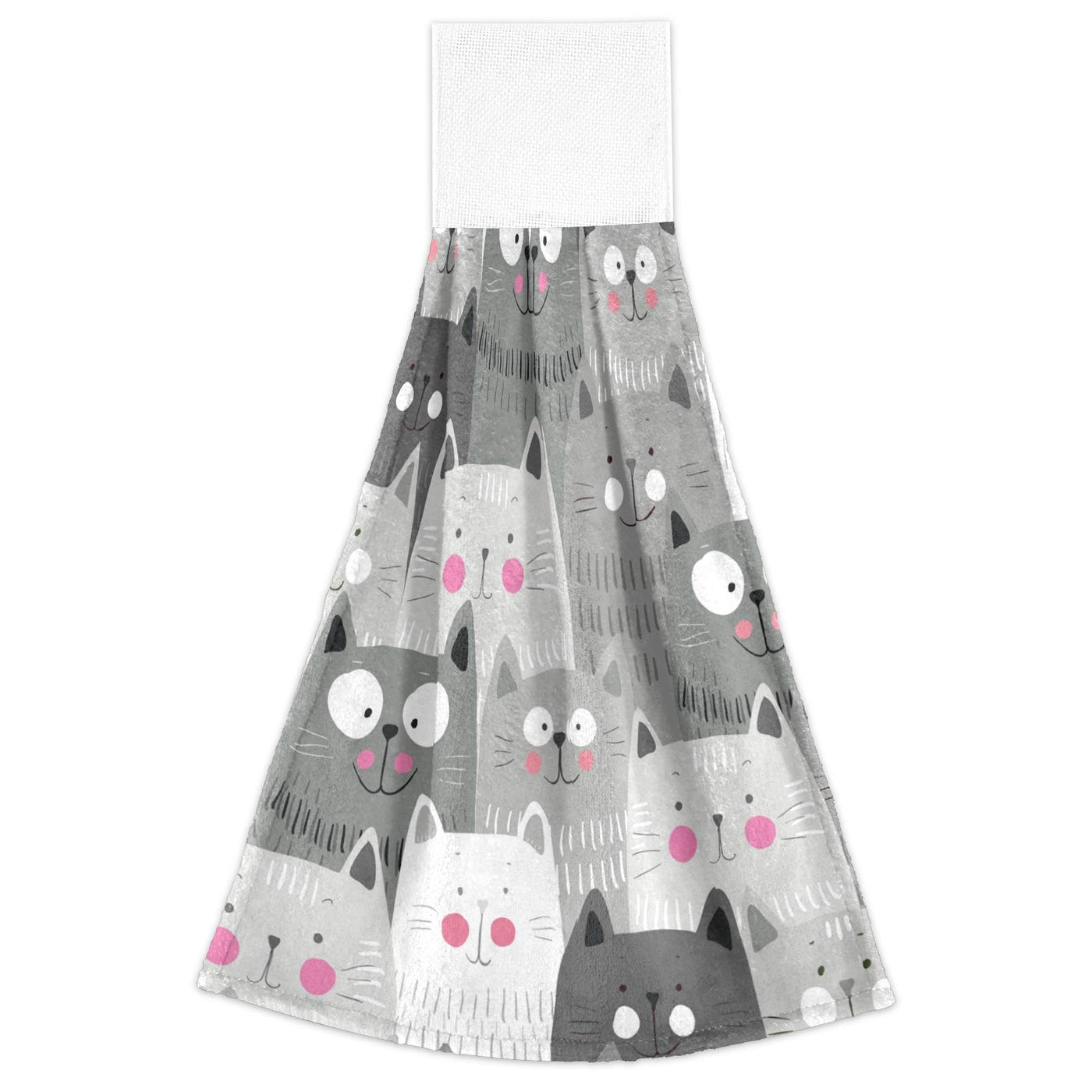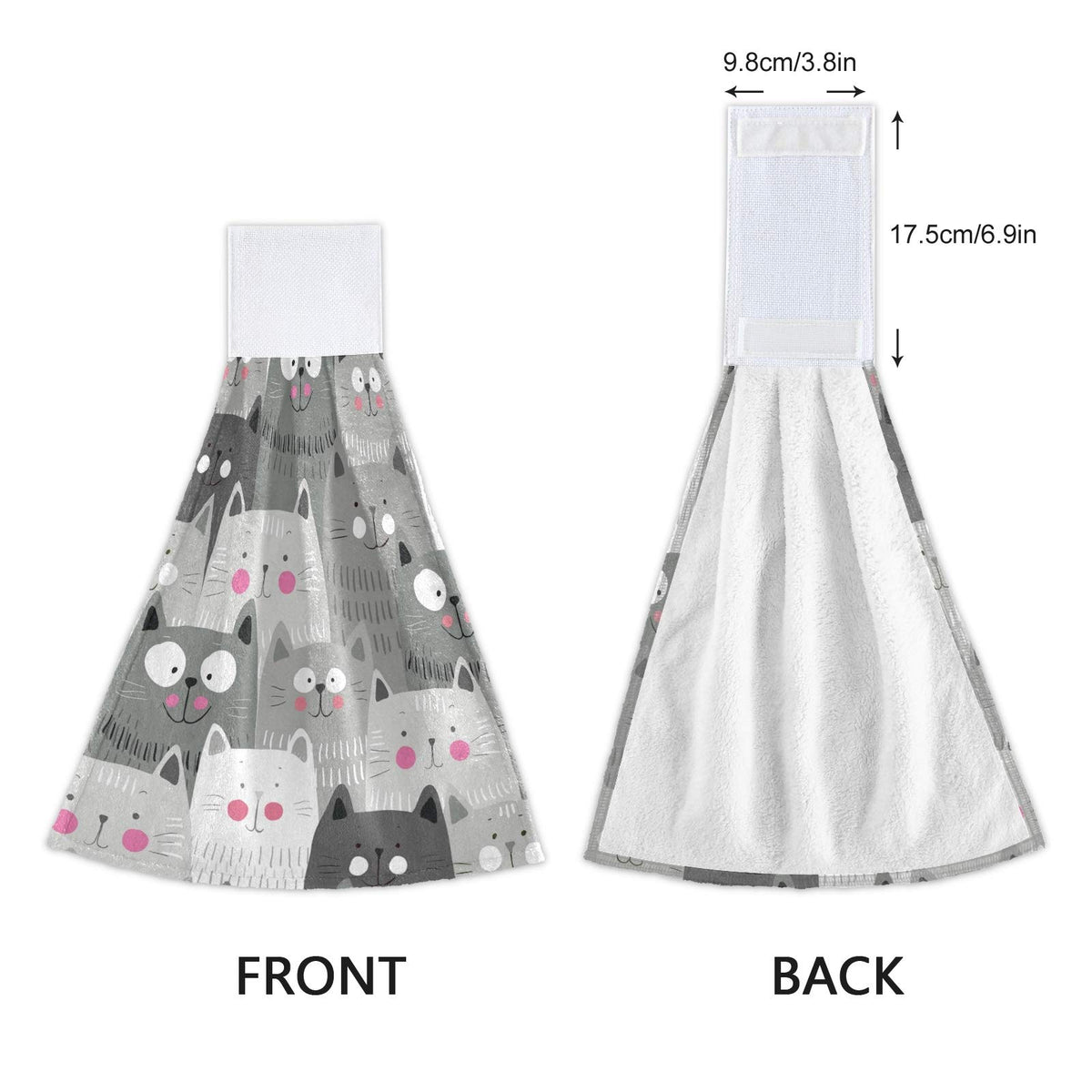 Boccsty Cats Kitten Pattern Hanging Kitchen Towels 2 Pieces Funny Gray Kitty Animal Dish Cloth Tie Towels Hand Towel Tea Bar Towels for Bathroom Farmhouse Housewarming Tabletop Home