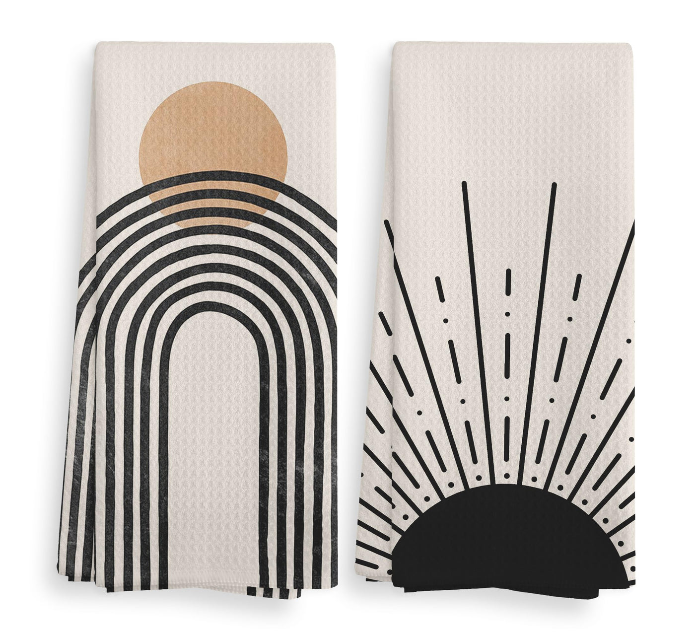 Boho Black Sun Sunrise Sunshine Rainbow Kitchen Towels and Dishcloths Sets of 2,Bohemian Absorbent Drying Cloth Hand Towels Tea
