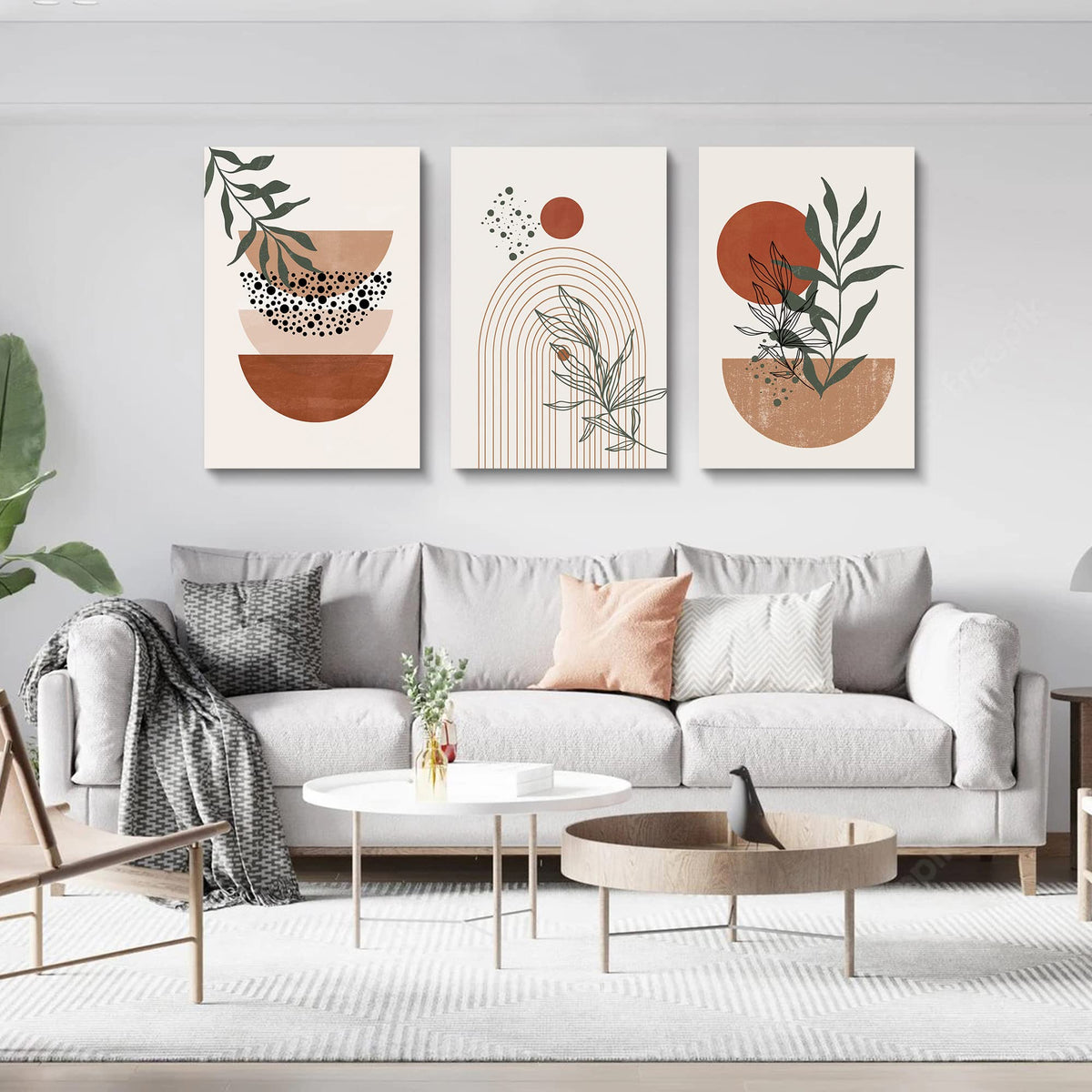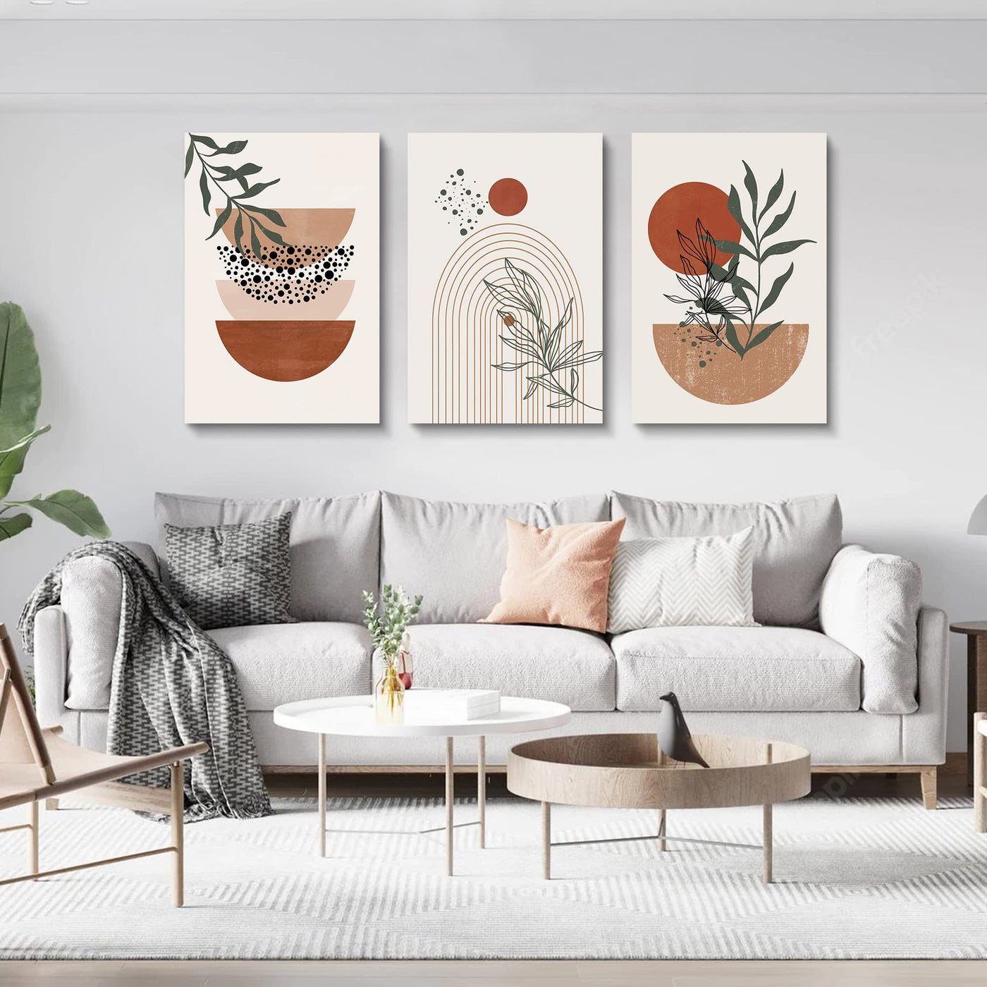 • Q: What are the dimensions of the Boho Wall Art set? A: The Boho Wall Art set includes three pieces, each measuring 20x30 inches (50x75 cm).