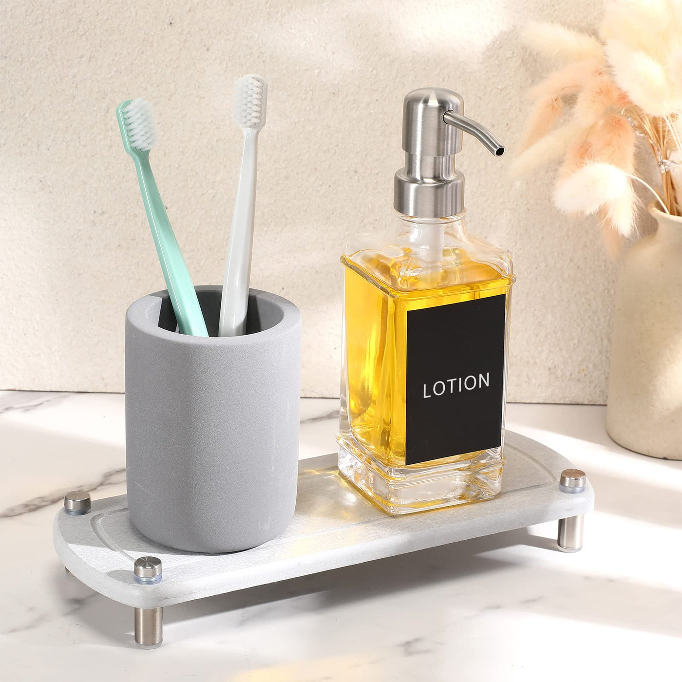 Bojdopie Sink Caddy, Instant Dry Bathroom Kitchen Sink Organizer, Water Absorbing Stone Tray For Soap Bottle Sponge Brush Candle