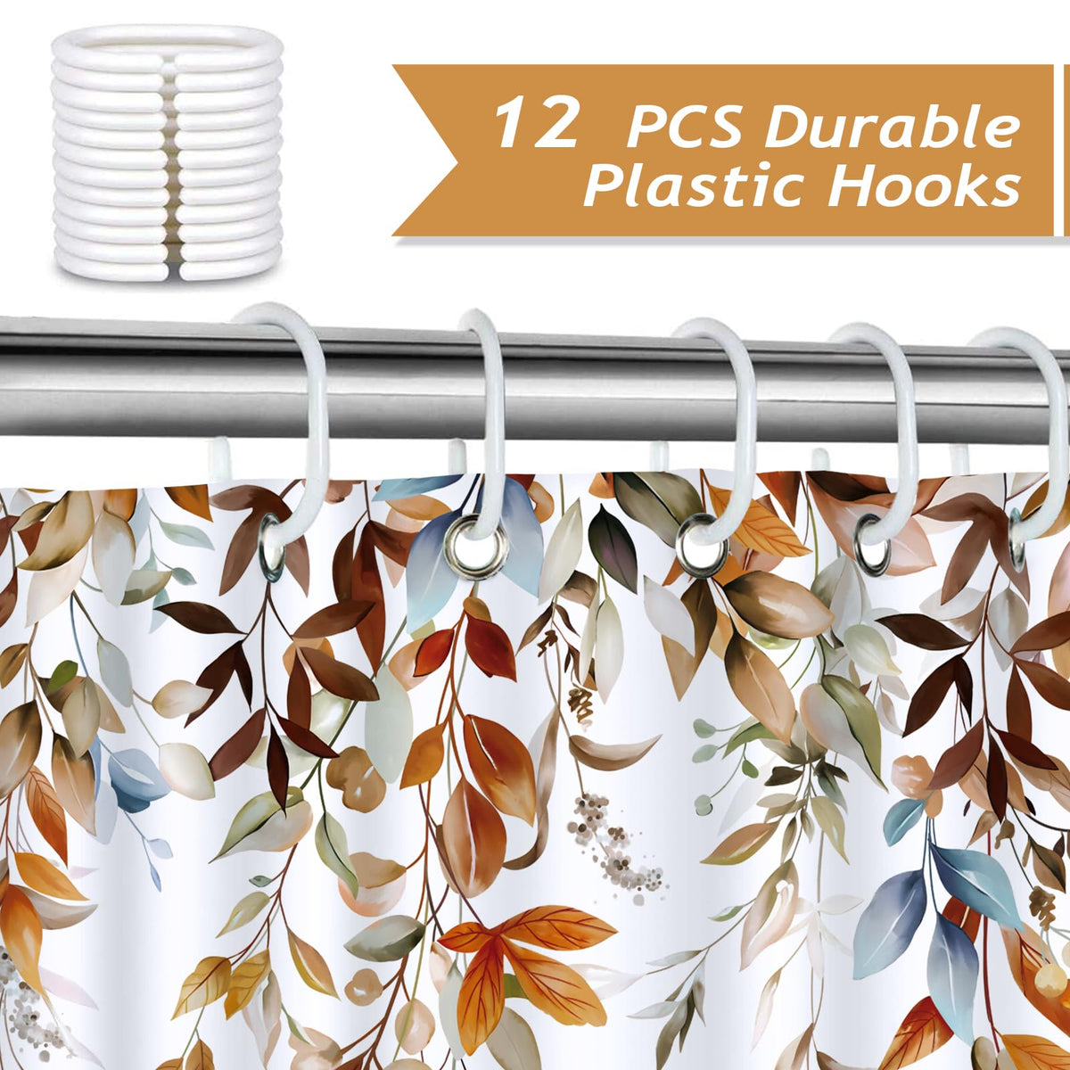 - Q: What colors are available for this shower curtain? A: The Bonhause Brown Eucalyptus Shower Curtain primarily features shades of brown and green, inspired by autumn leaves, but specific color availability may vary.