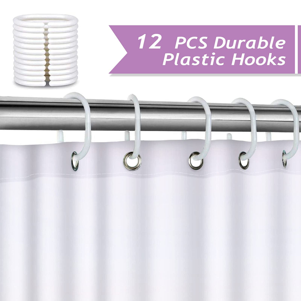 • Q: How do I install the shower curtain? A: The shower curtain comes with twelve plastic hooks and reinforced metal grommets, making it easy to install and slide onto a curtain rod.