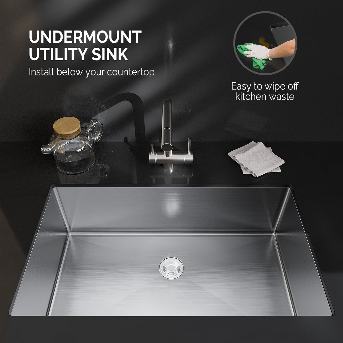 Bonnlo Undermount Commercial Kitchen Sink,32'' 19'' 10'' Stainless Steel Utility Farmhouse Sink, Deep Workstation Sink, Single