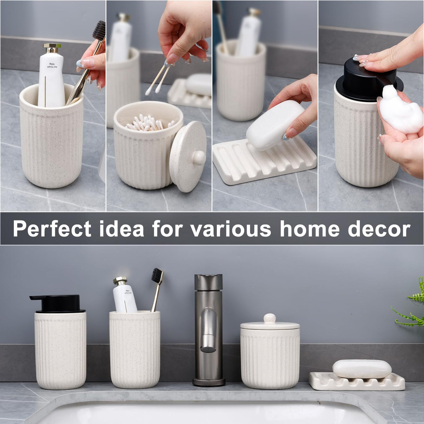 Bosilunlife Beige Bathroom Accessories Set - Ceramic Bathroom Counter Soap Set Bathroom Decor Sets Accessories Bathroom Lotion S