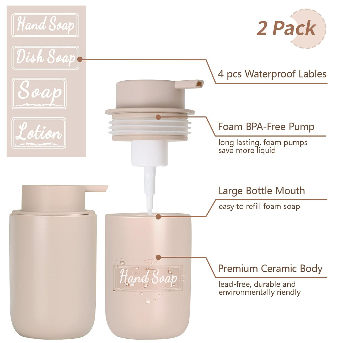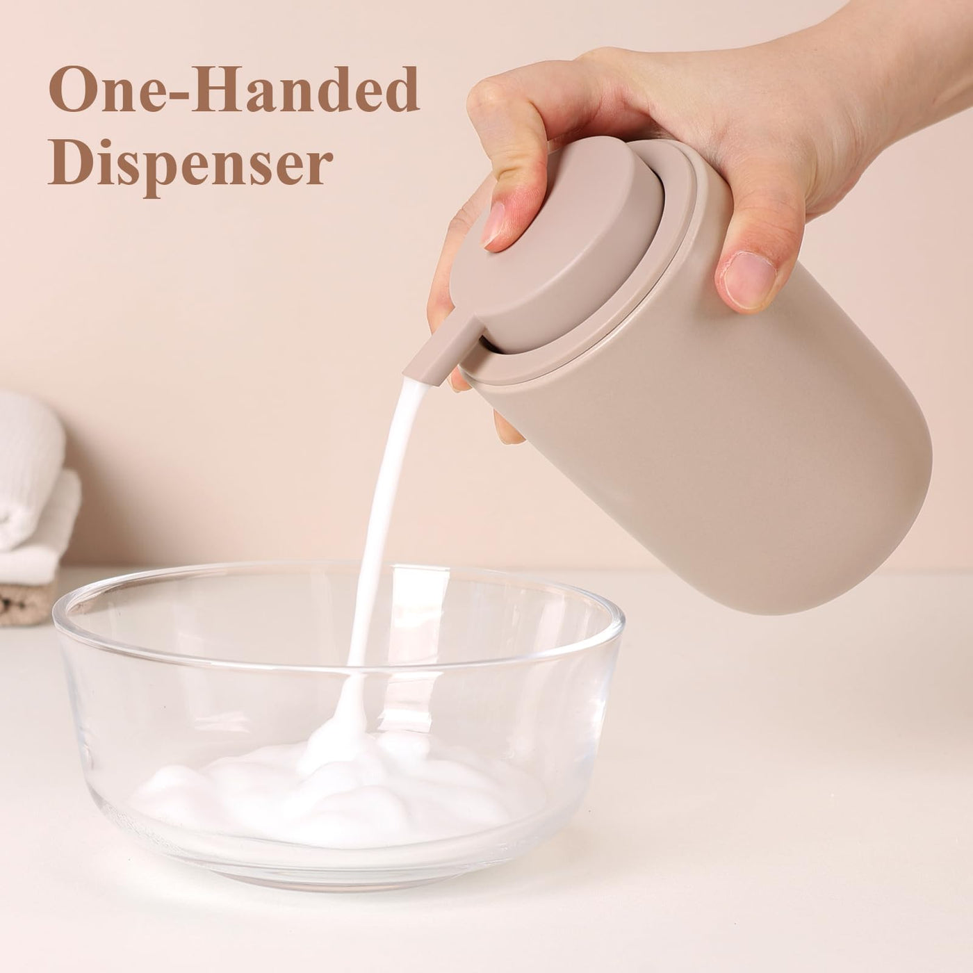 Bosilunlife Foaming Soap Dispenser Set - Khaki Ceramic Foam Hand Soap Dispenser 12Oz Soap Dispenser Set With Rust Proof Pump, 4P
