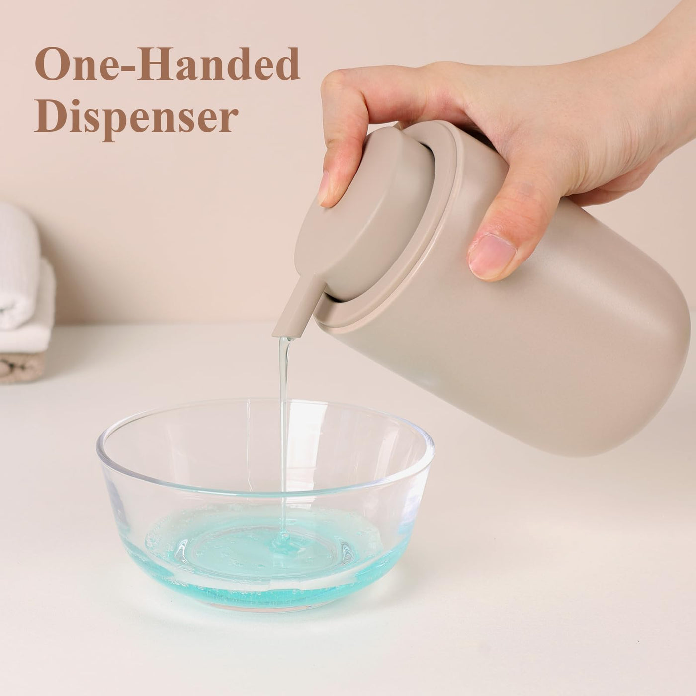 - Q: What is included in the BosilunLife Khaki Soap Dispenser Set? A: The set includes two 12oz ceramic soap dispensers and four waterproof clear stickers.