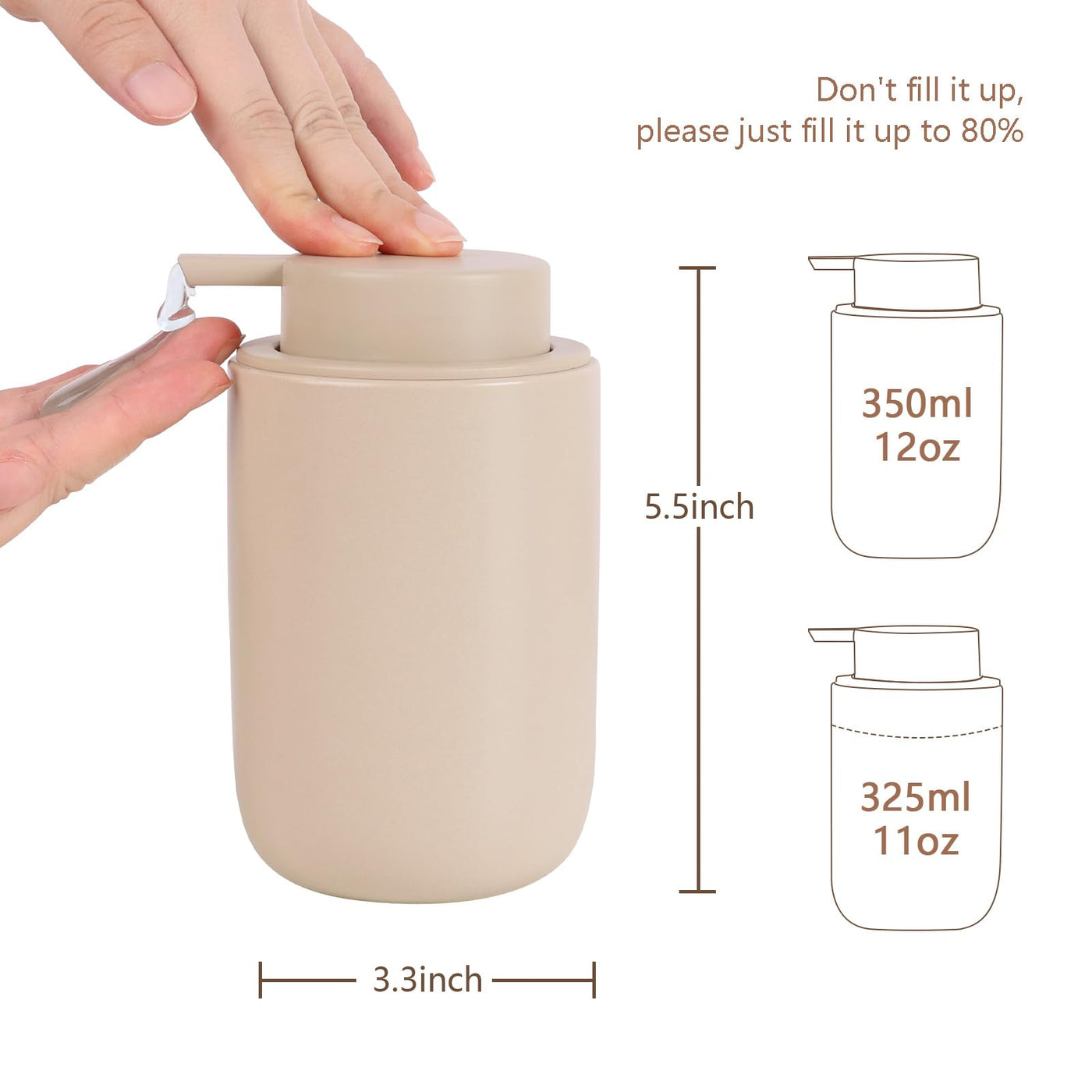 Bosilunlife Khaki Soap Dispenser Set - 2 Pack 12Oz Ceramic Dish Soap Dispenser With Rust Proof Pump For Kitchen, Hand Soap And L