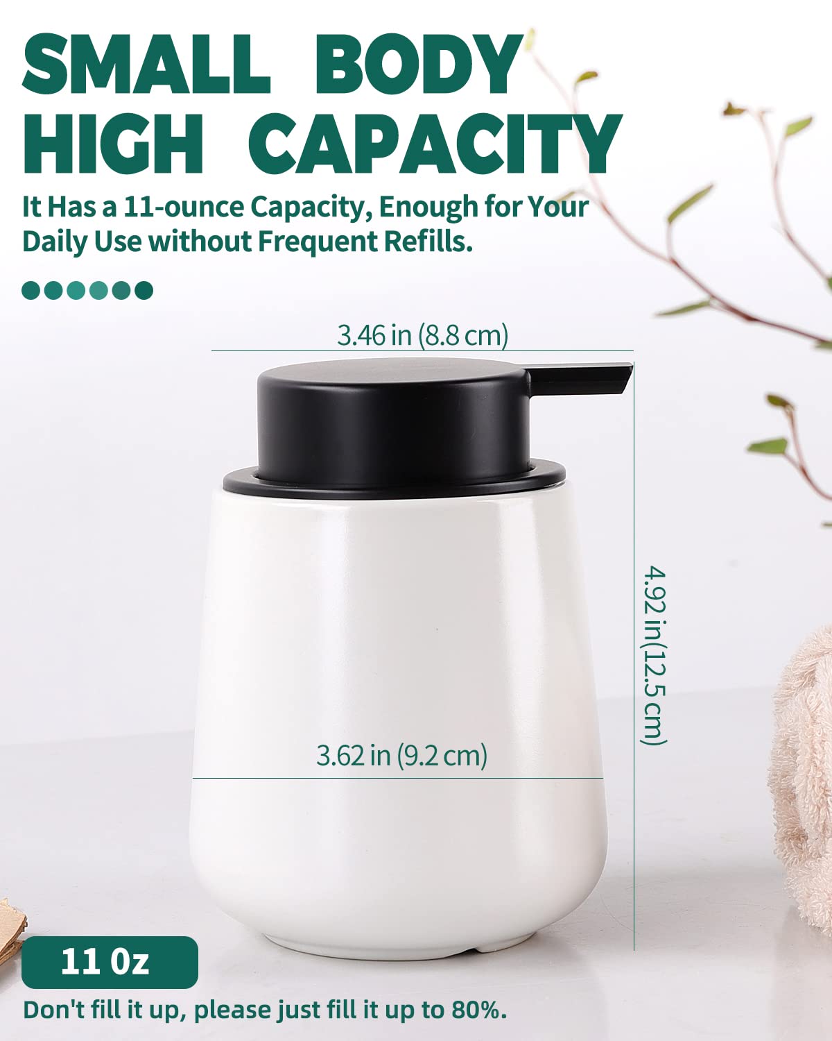 Bosilunlife Liquid Soap Dispenser - 12Oz Lotion Dispenser With Pump Matte White Ceramic Soap Dispenser Bathroom Dish Hand Soap D