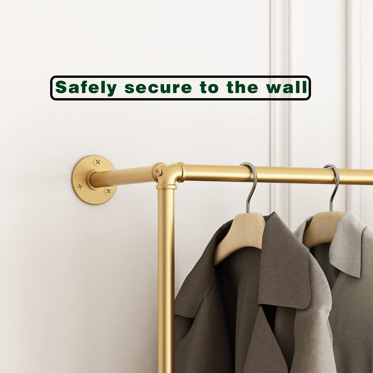 Bosuru Industrial Pipe Clothing Rack Wall Mounted,Clothes Racks With Double Hanging Rods For Closet Storage(Gold)