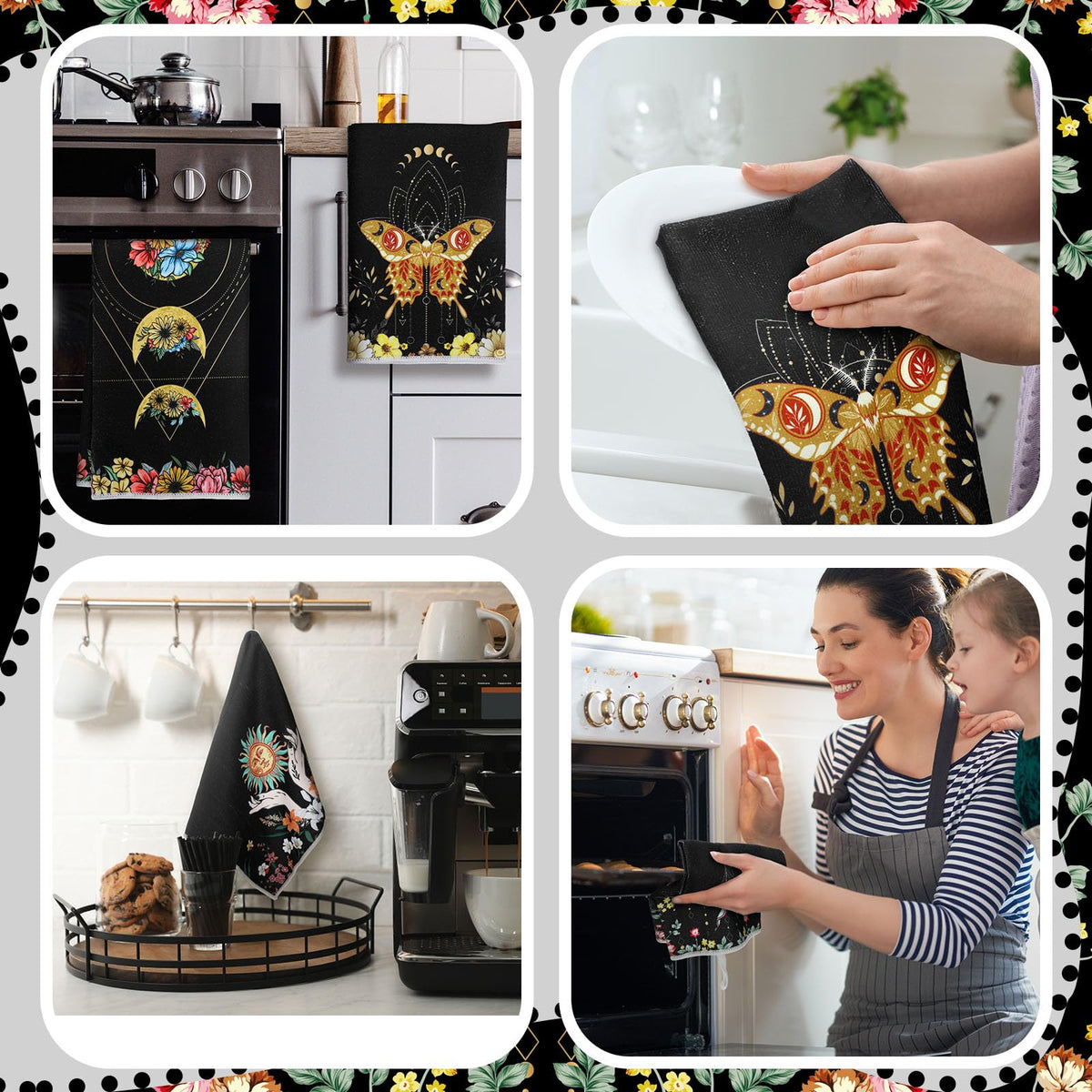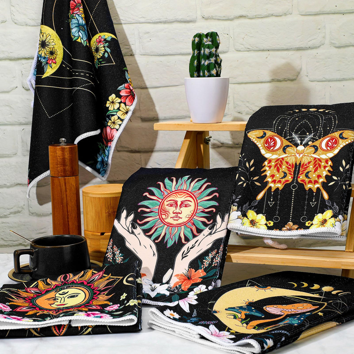Boyiee Set Of 6 Witchy Kitchen Towels Boho Tea Towels Absorbent Mushroom Floral Dish Towels 24 X 16'' Gothic Dish Towels Sun Moo