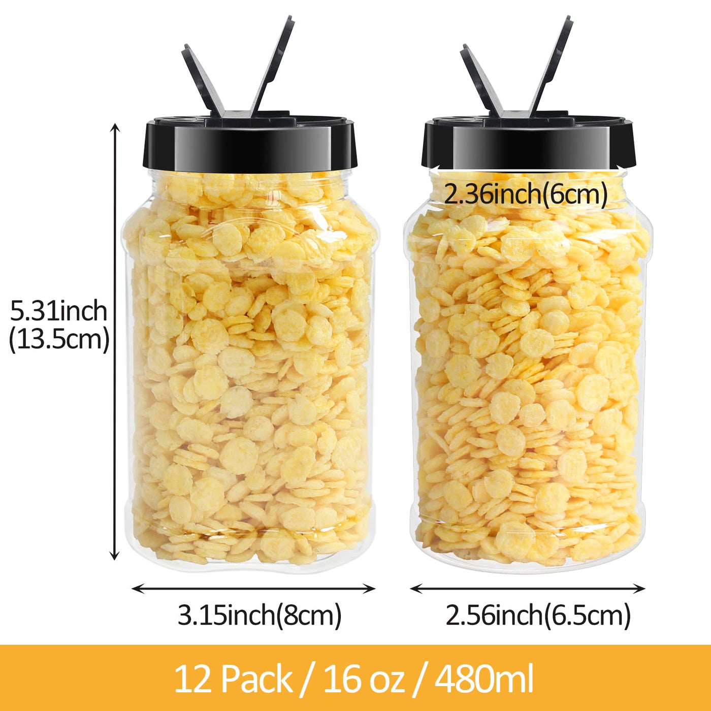 Bpfy 12 Pack 16 Oz Clear Plastic Spice Jars With Black Plastic Lids, Plastic Spice Bottles, Plastic Seasoning Containers With Ch