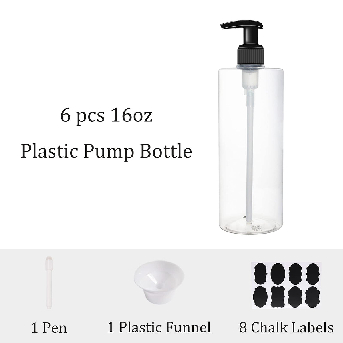 Bpfy 6 Pack 16 Oz Plastic Pump Dispenser Bottles For Massage Oil, Shampoo, Lotions, Body Wash Pump Bottles, Hand Sanitizer Refil