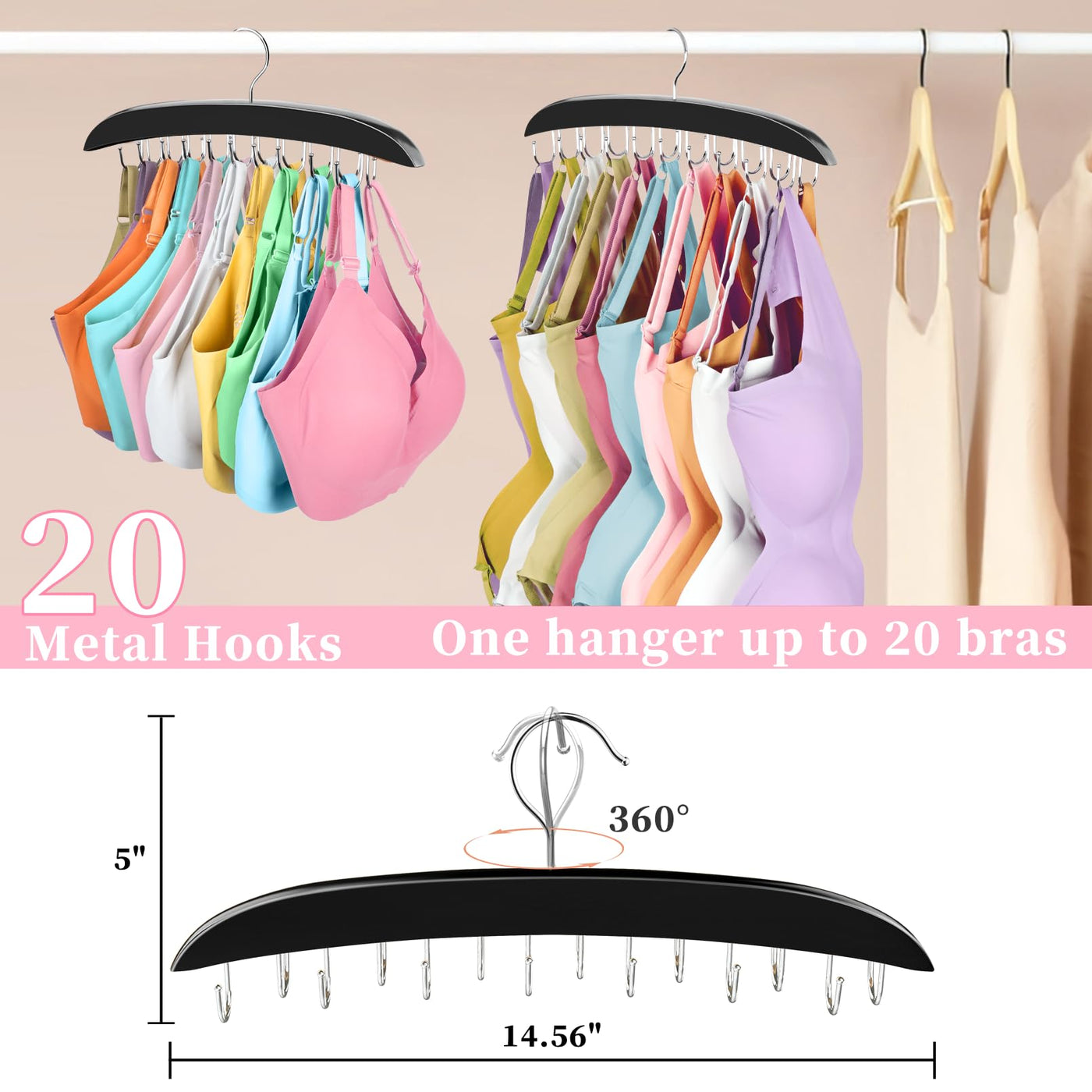 Bra Hanger For Closet, 360 Rotating Bra Organizer Space Saving W/20 Foldable Metal Hooks, Tank Top Hanger Closet Organizers And