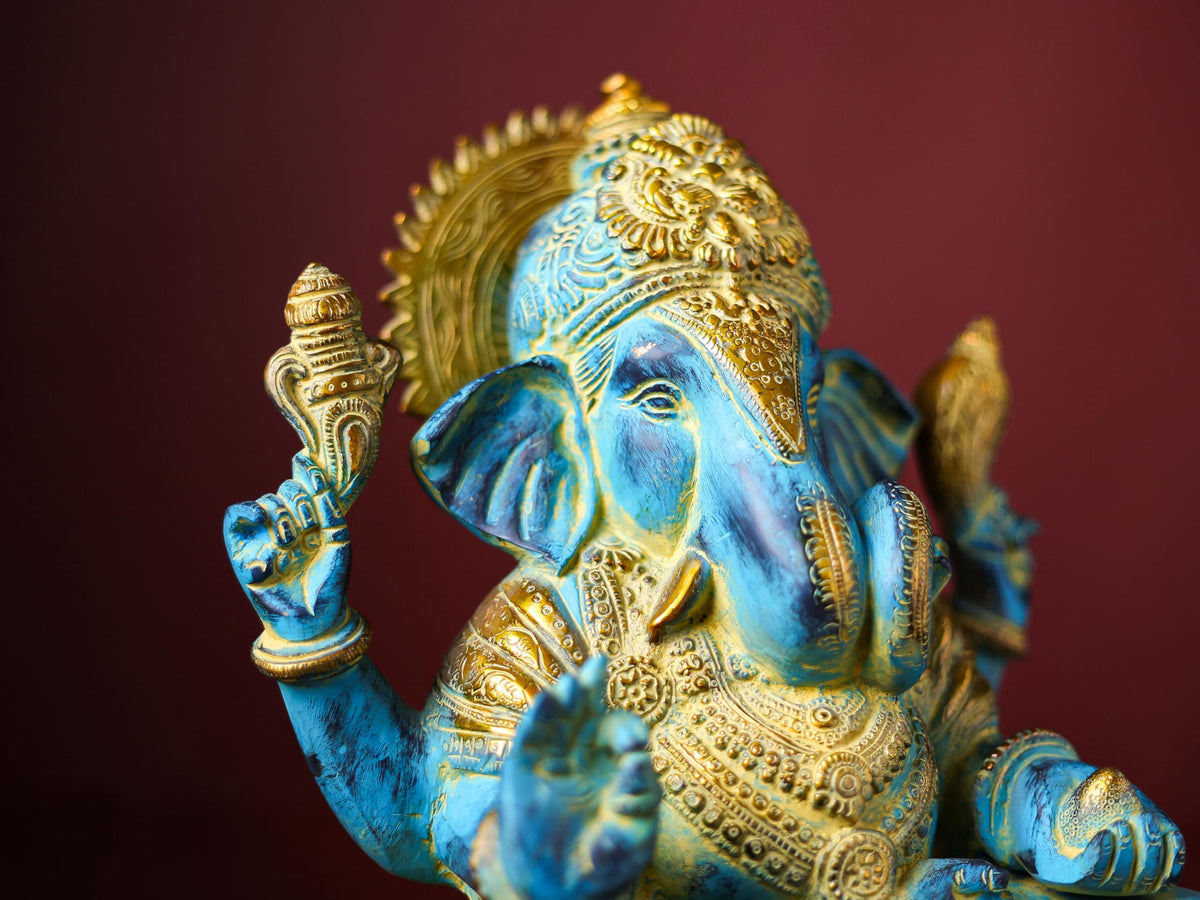 Brass Ganesha Statue With Mosaic, 29 Cm Brass Blue Golden Finish Ganesh Statue, Ganpati Idol, Good Luck Gift For New Beginnings,