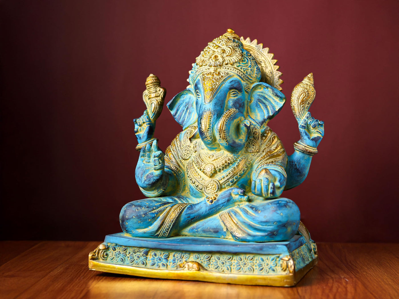 Brass Ganesha Statue With Mosaic, 29 Cm Brass Blue Golden Finish Ganesh Statue, Ganpati Idol, Good Luck Gift For New Beginnings, House Warming Gift | Home Altar Decor | Diwali Gift.