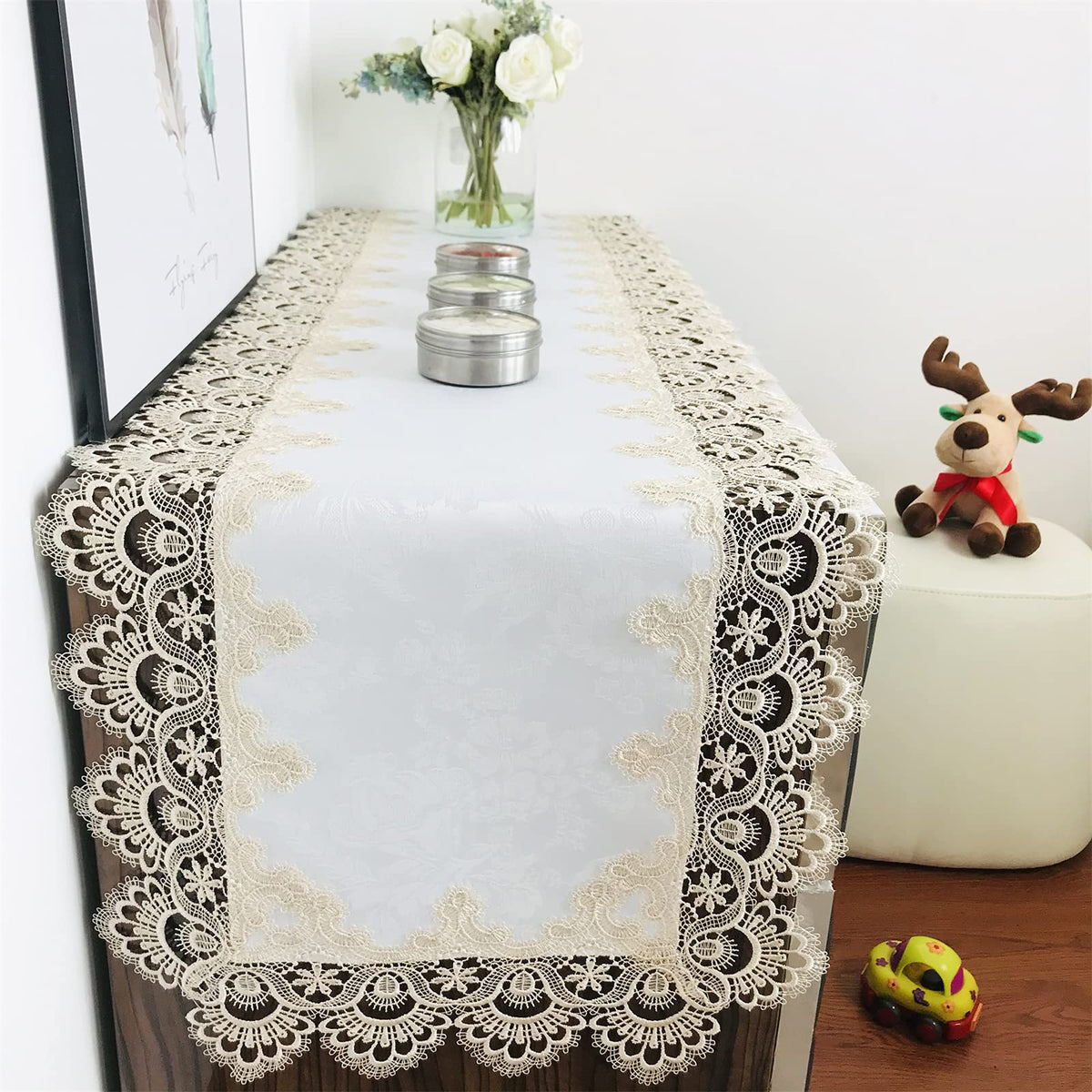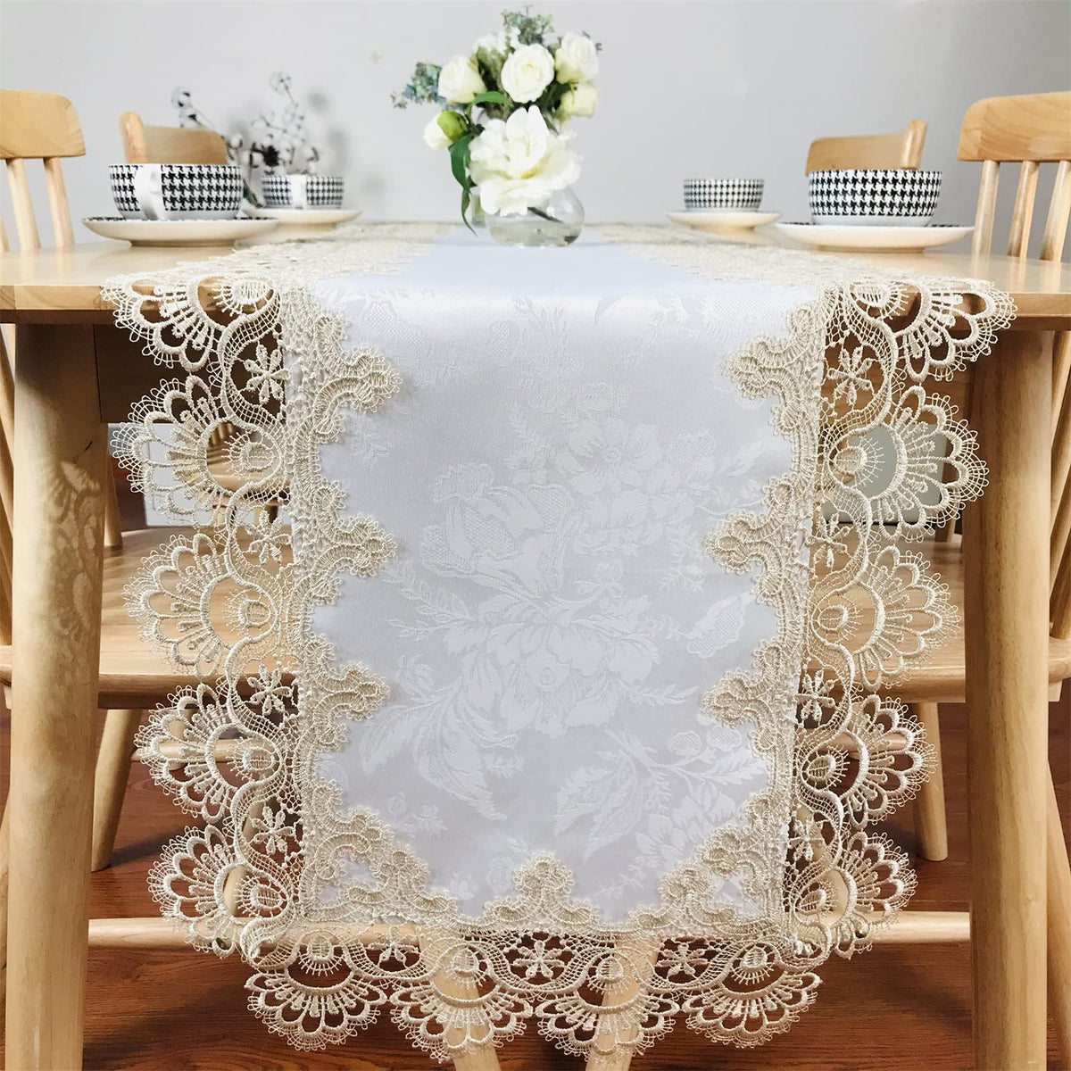 Breksdat Rectangle Table Runner Beige Embroidered Lace 16 X 70 Inches Wedding Dining Table Dresser Scarf With Carnation Lace Fab