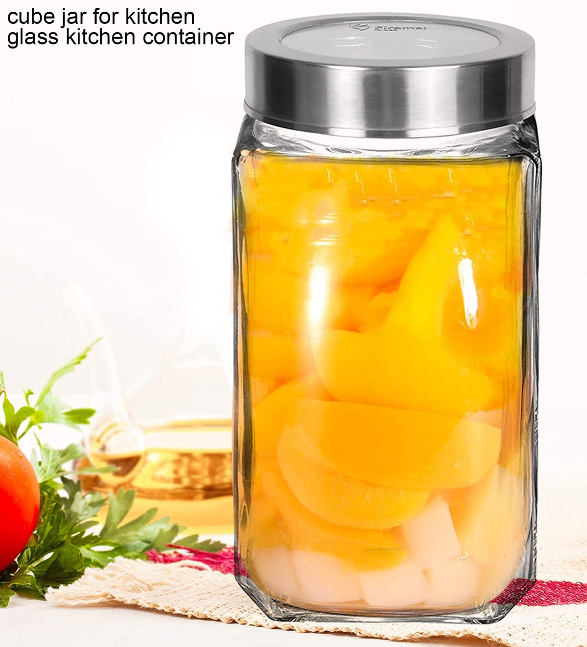 Brezzycloud Piraml Glass Cubical Square Transparent Jars & Containers for Kitchen Pantry, Snacks, Masala, Jams, Pickles, Cookies