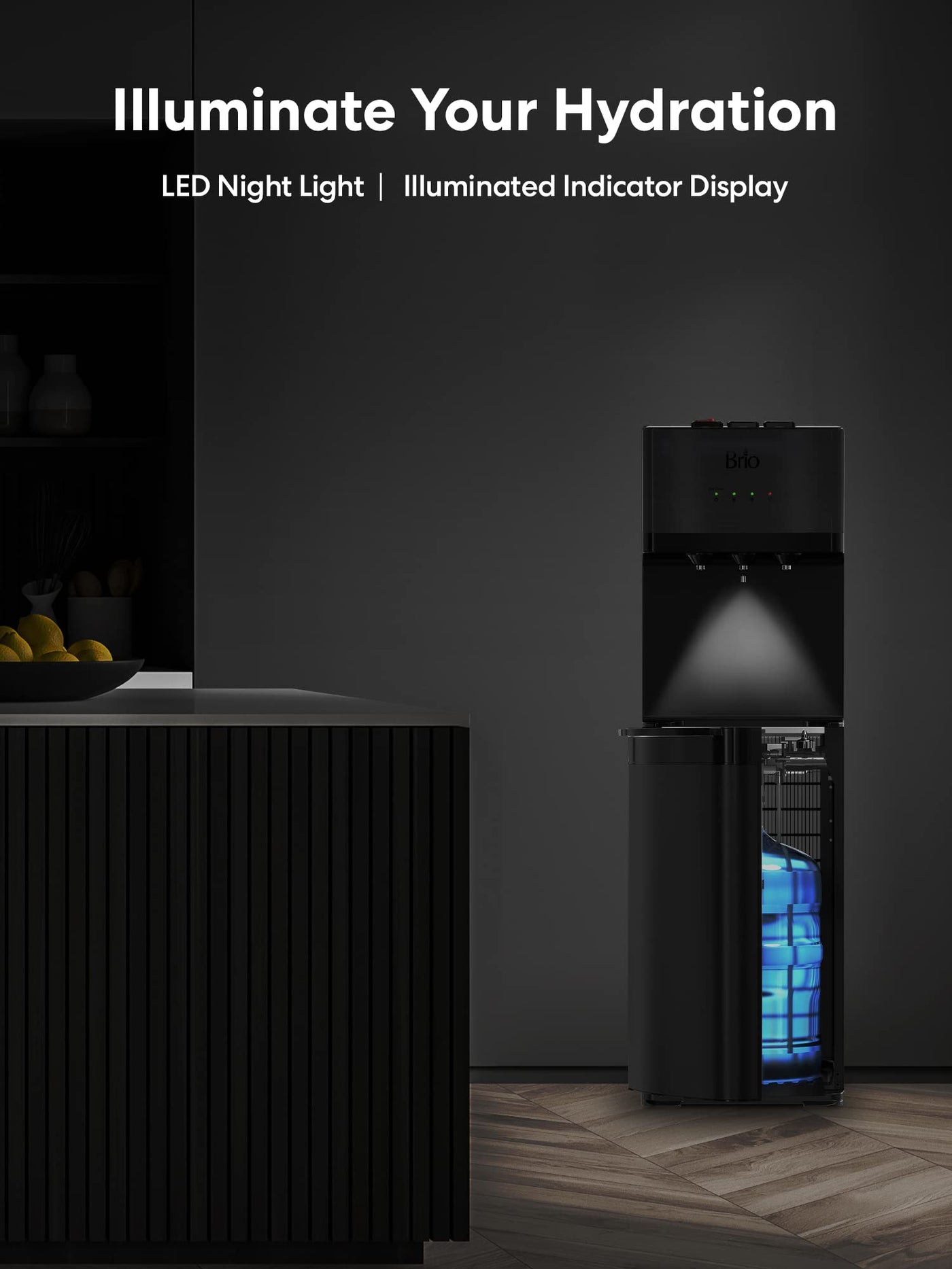 - Q: Is it difficult to load water bottles into this cooler? A: No, the Brio Water Cooler features a convenient bottom load design, allowing for easy bottle replacements without the need to lift heavy bottles.