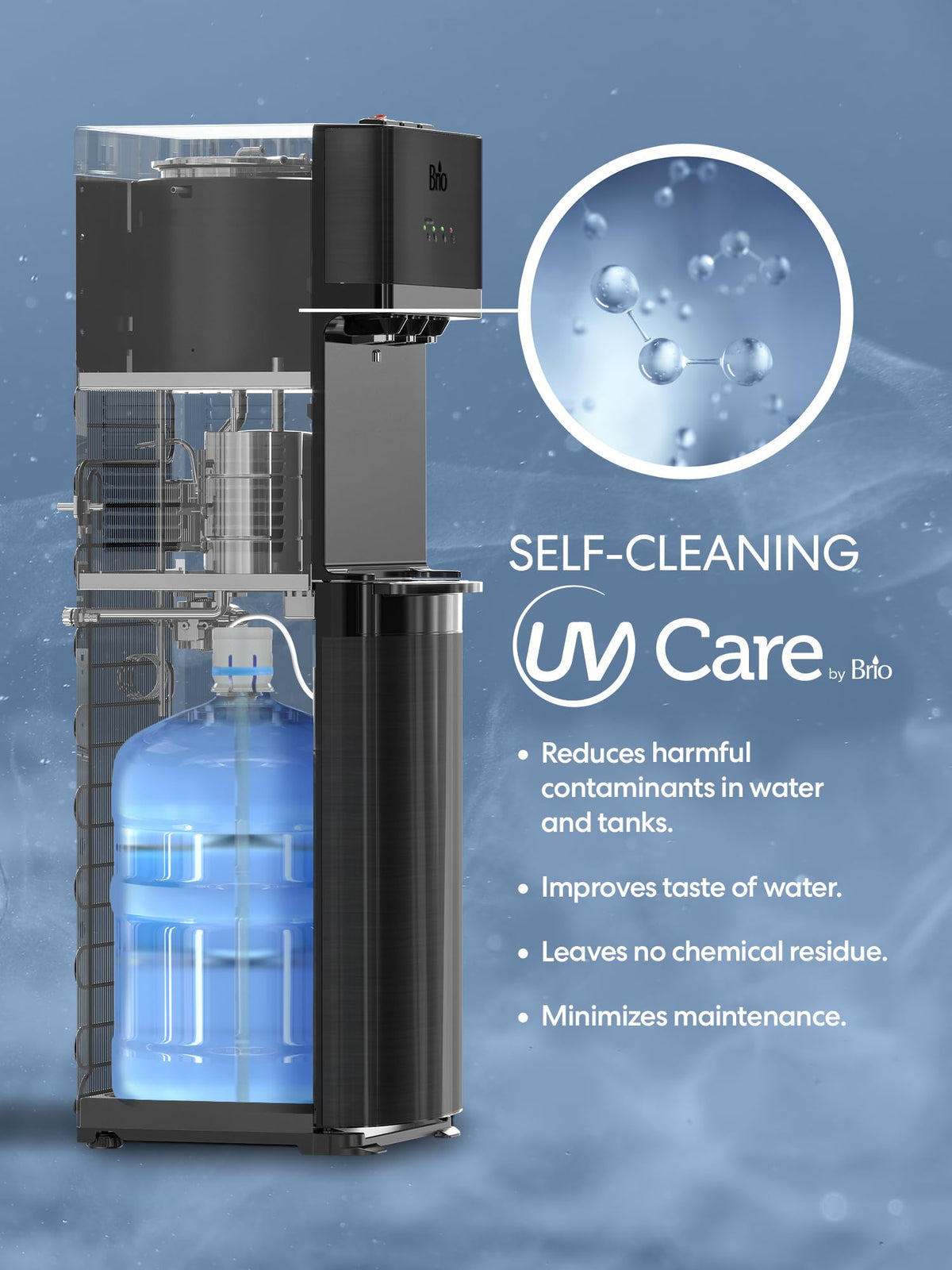 Brio Self Cleaning Bottom Loading Water Cooler Water Dispenser - Black Stainless Steel - 3 Temperature Settings - Hot, Room & Co