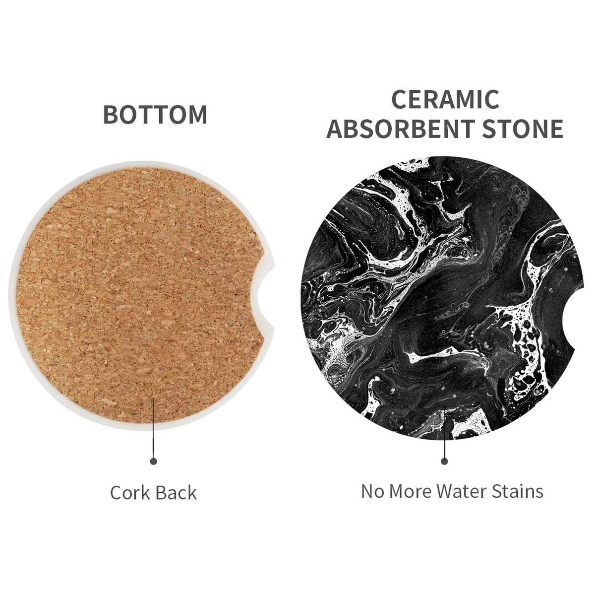 - Q: How do these coasters help with spills in my car? A: These coasters are crafted from absorbent ceramic stone, which effectively absorbs moisture from spills or condensation, keeping your car clean and dry.