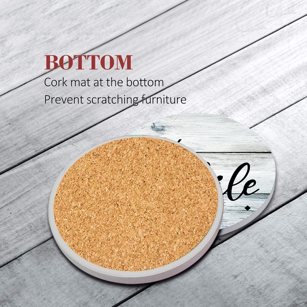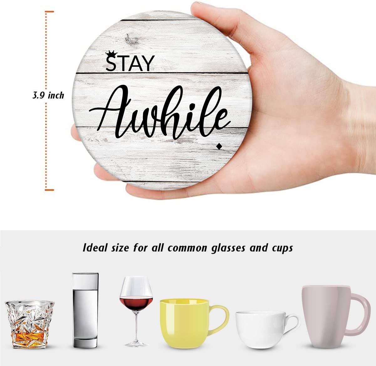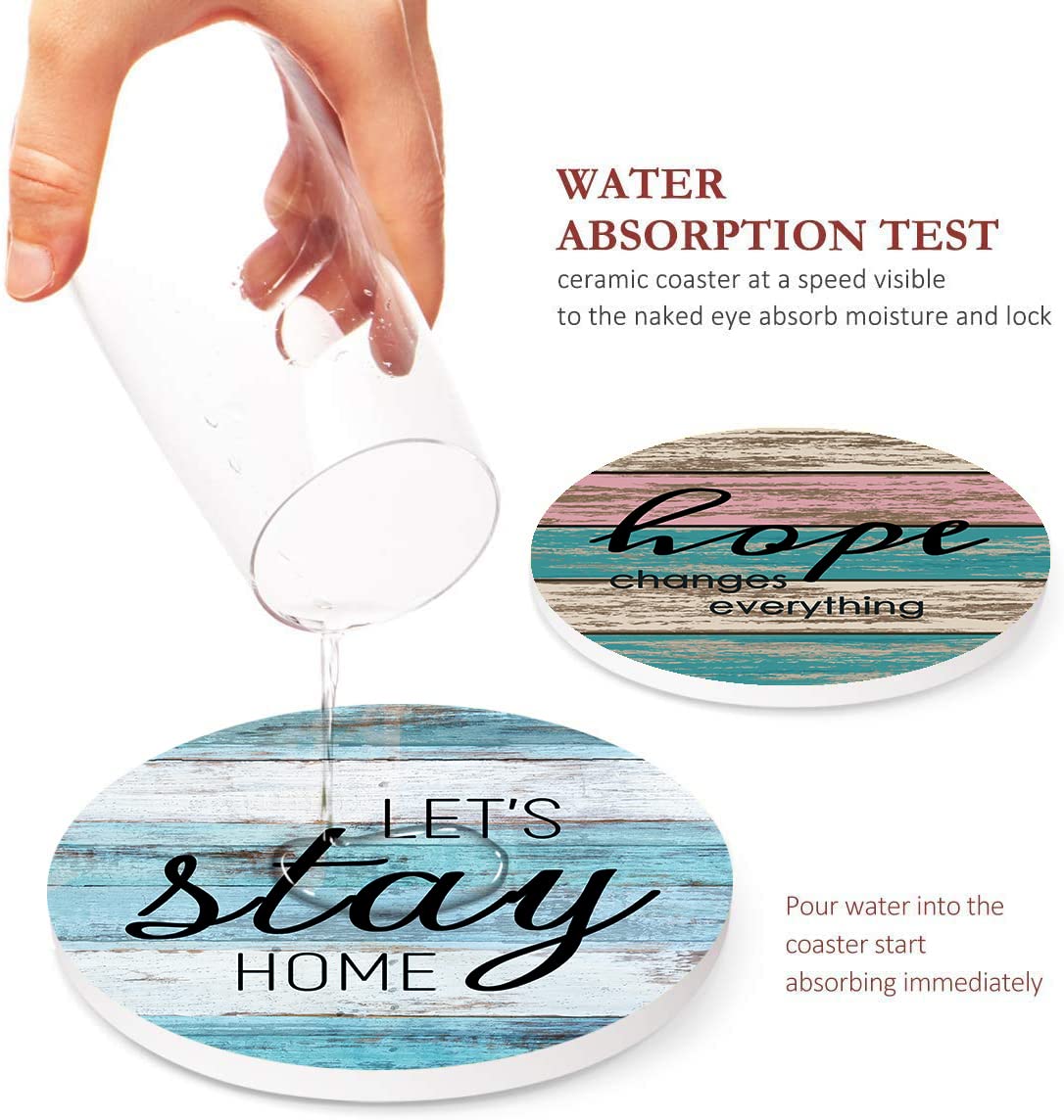 Britimes Coaster For Drinks Set Of 6, Wooden Planks Wood Paint Table Absorbent Round Ceramic Stone Mat, With Cork Base And Metal
