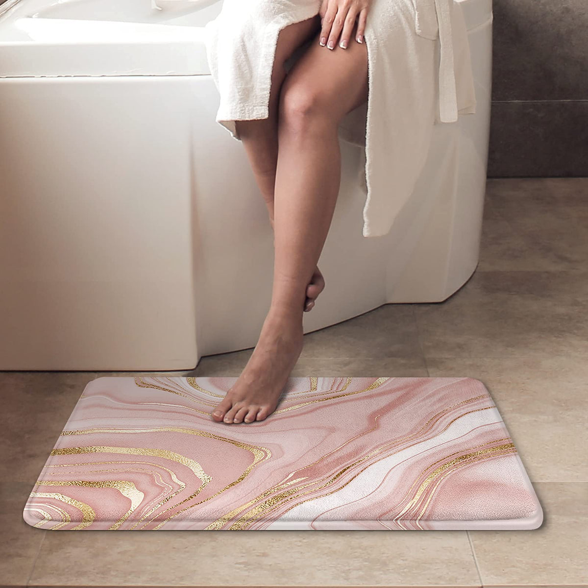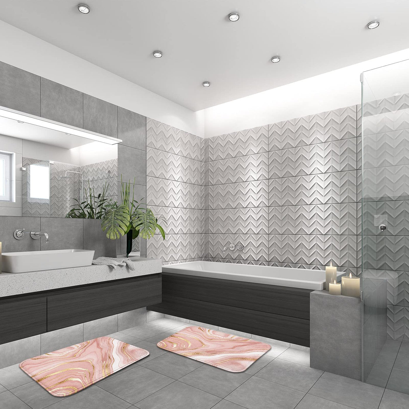 Britimes Marble Pink Bathroom Rug Set Of 2, Washable Cover Floor Rug Carpets Floor Bath Mat Bathroom Decorations 16X24 And 20X32