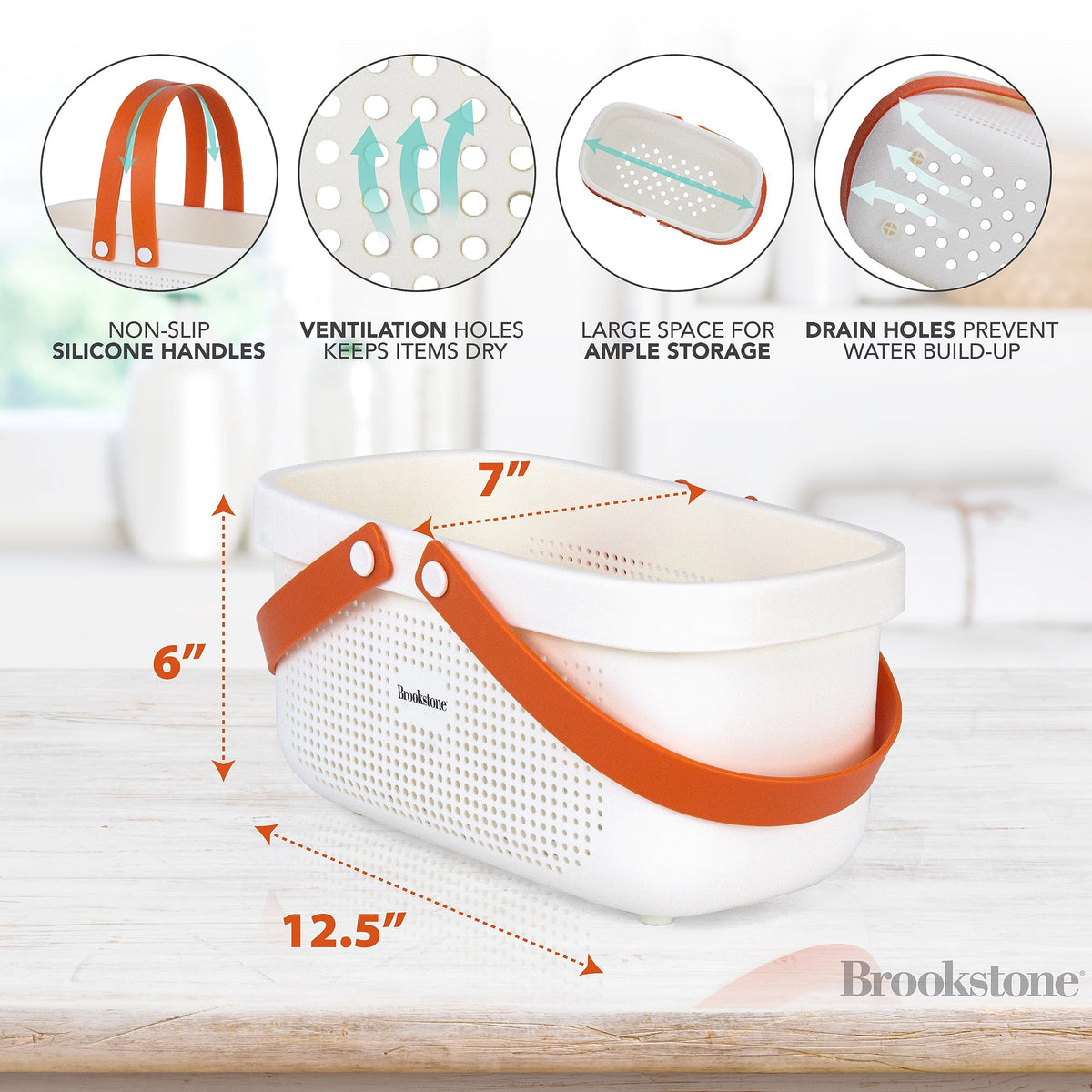 Brookstone Bkh1635, Large Portable Shower Caddy With Soft Silicone Carrying Handle, Bathroom Organizer Basket, Plastic Bath Tote