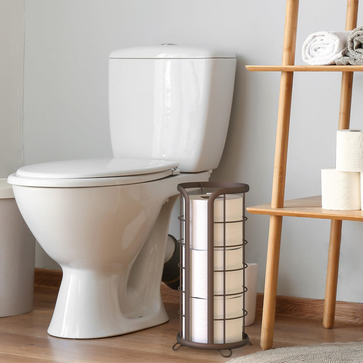 Brookstone, Bronze Toilet Paper Holder, Freestanding Bathroom Tissue Organizer, Minimalistic Storage Solution, Modern & Stylish