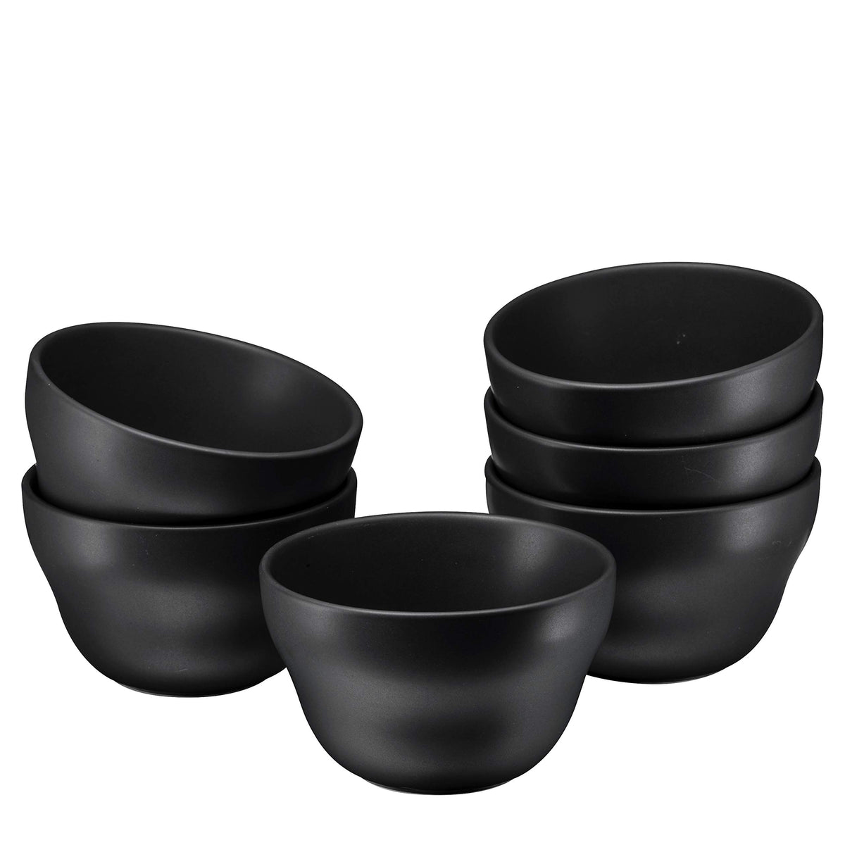Bruntmor 8 Oz Ceramic Dessert Bowl Set Of 6 In Matte Black, 8 Ounces Ceramic Chip And Dip Bowls, Small Ceramic Dish Set For Snac