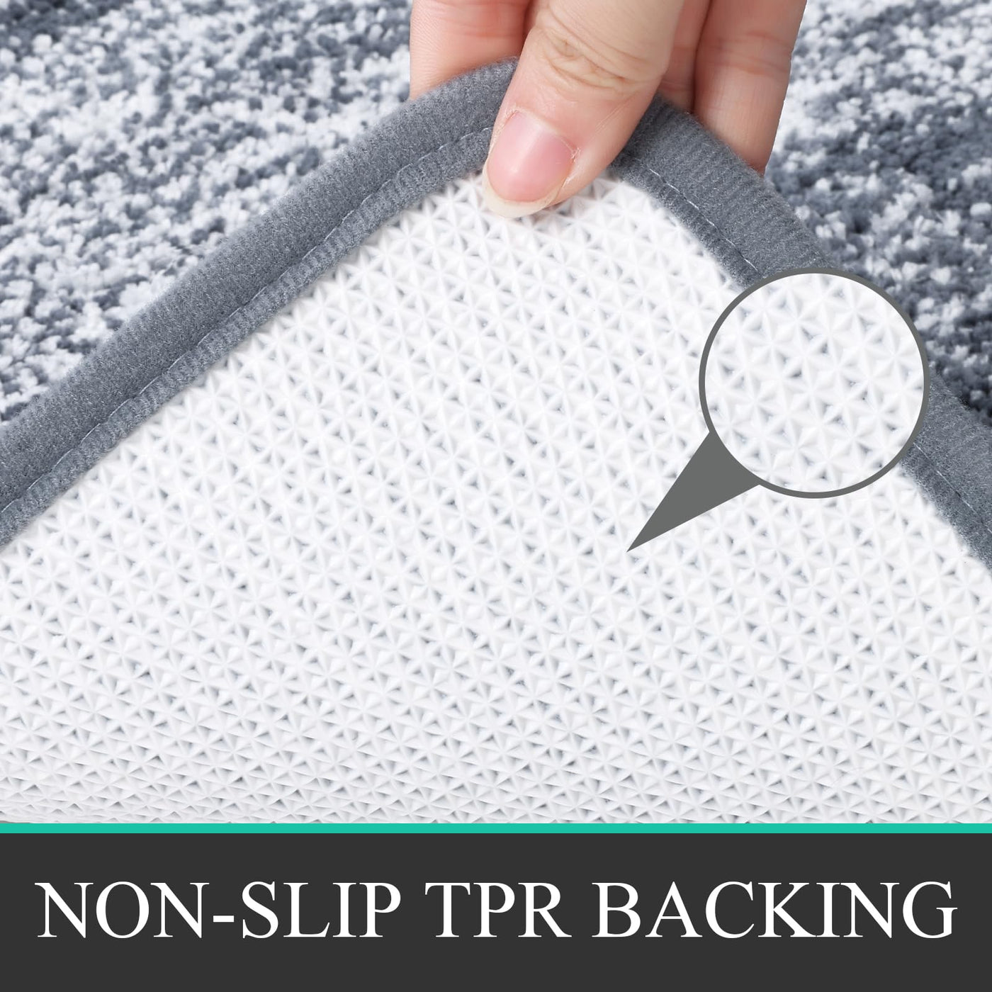 - Q: How do the non-slip features work? A: These bathroom rugs feature an upgraded non-slip TPR backing that provides a firm grip on the ground to prevent slipping.