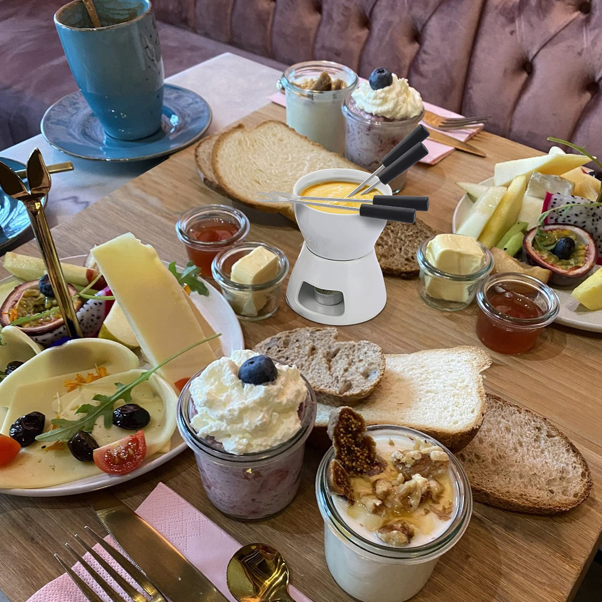 - Q: Can the fondue pot be used for serving other foods? A: Yes, the fondue pot is versatile and can be used to serve various dips, fruits, vegetables, cookies, and appetizers.