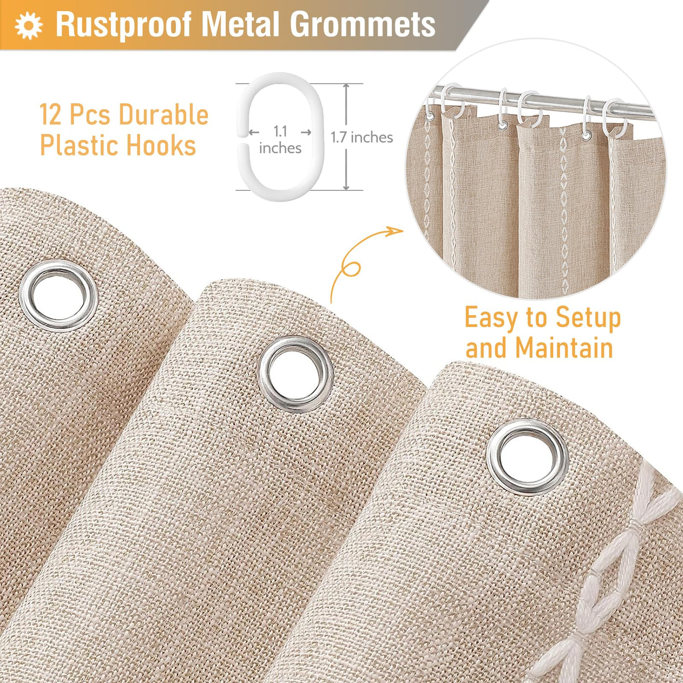 Bttn Boho Farmhouse Shower Curtain, Linen Rustic Heavy Duty Striped Fabric Shower Curtain Set With Tassel, Water Repellent, Bohe