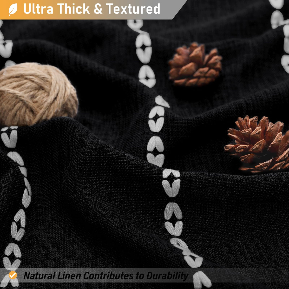 - Q: What style does the BTTN Boho Farmhouse Shower Curtain feature? A: The shower curtain features a unique bohemian and farmhouse style, with a 3D embroidery stripe design and tassels on three sides, adding an elegant touch to your bathroom.