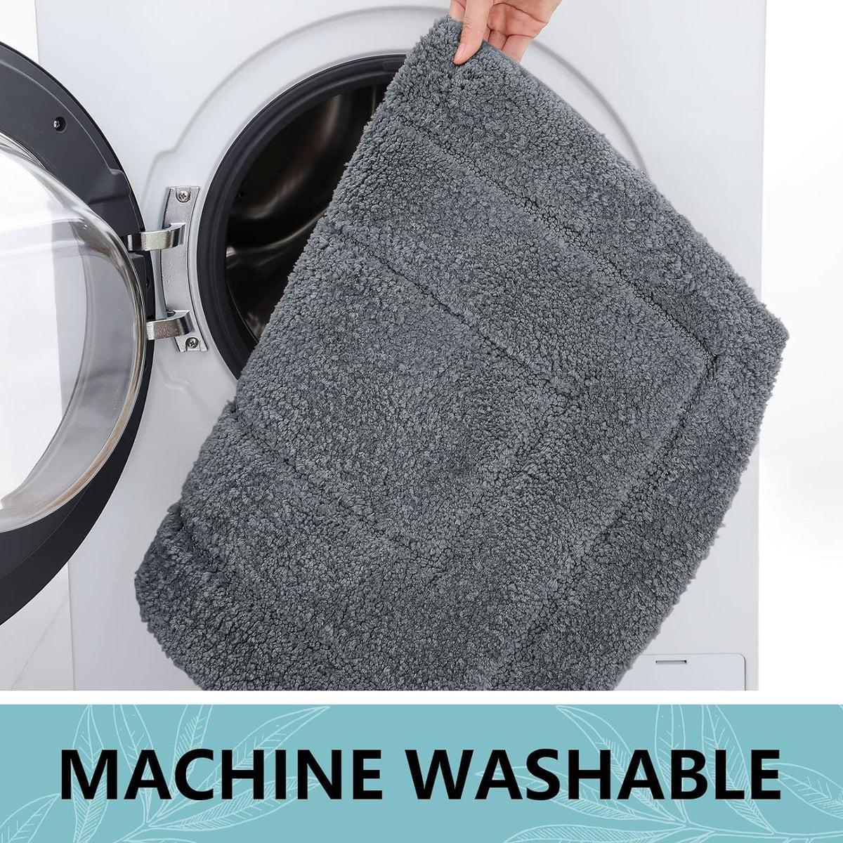 • Q: How absorbent is this bathroom rug? A: The microfiber material of the rug is ultra-absorbent, quickly trapping excess water from your feet to keep your bathroom floor dry.